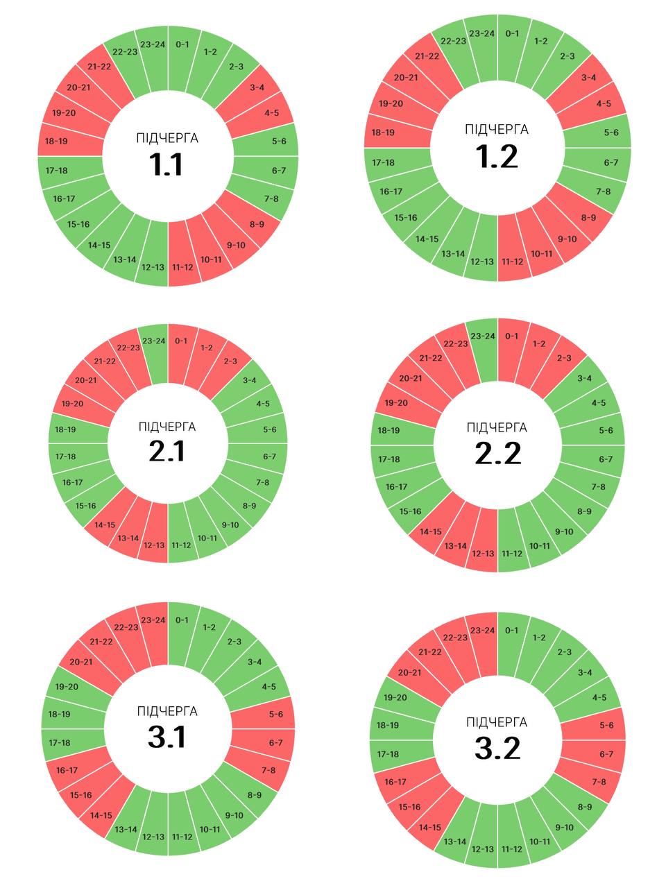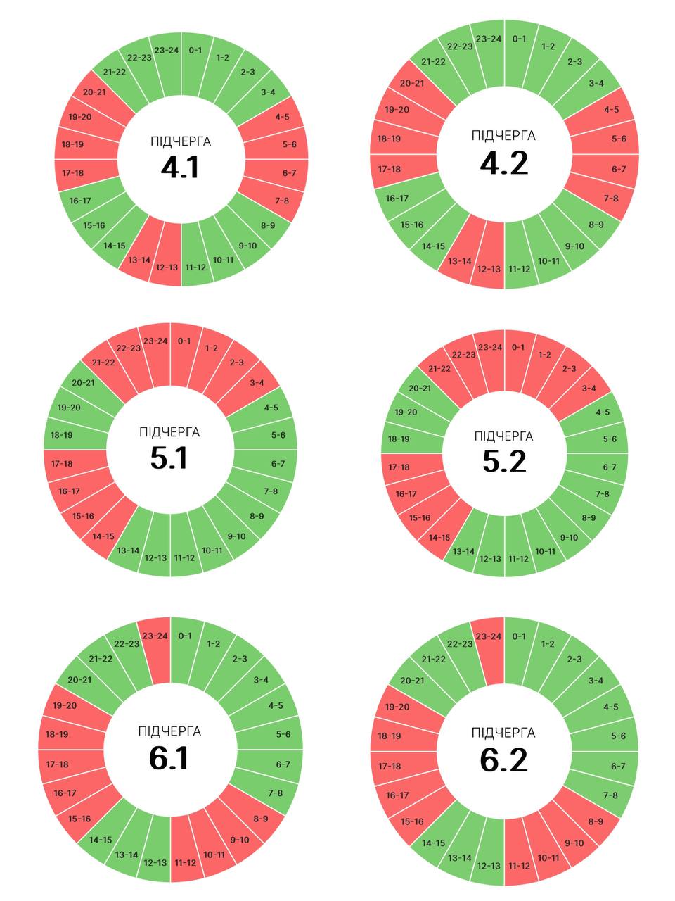 Завтра вимкнення передбачені у всіх підчергах. Години вимкнень дещо збільшуються, ніж вчора.
