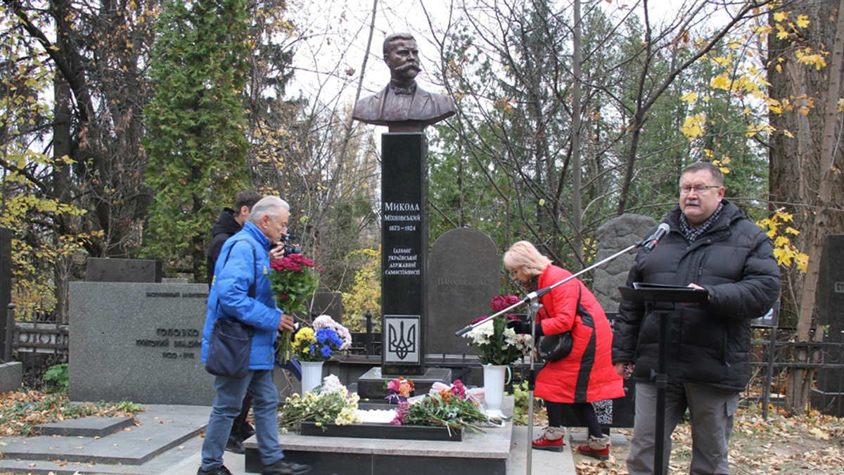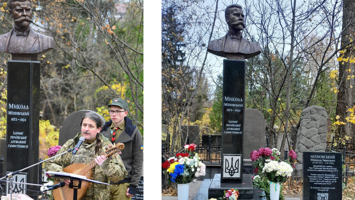 У неділю 10 листопада українська громадськість зібралася на центральній алеї Байкового кладовища у Києві, щоб відкрити оновлений пам’ятник ідеологу українського самостійництва Миколі Міхновському. Автором виступив калуський скульптор Ігор Семак, що є козаком історичного клубу “Холодний Яр”.