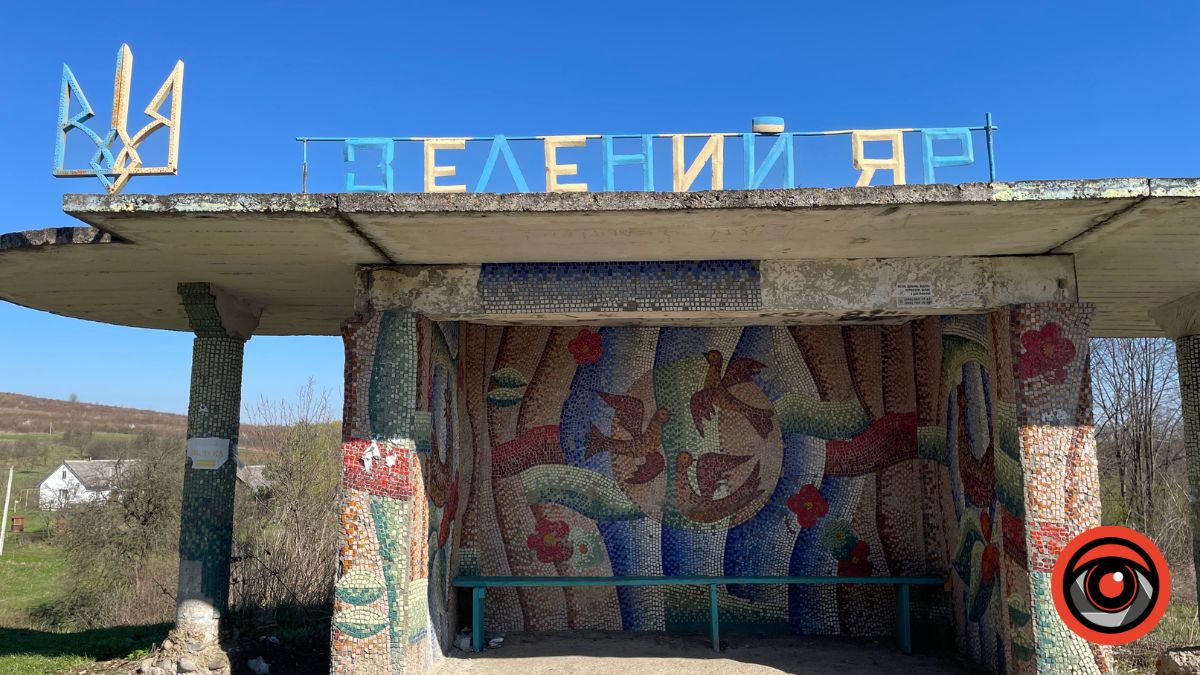 Сьогодні ми покажемо мозаїчну зупинку в селі Зелений Яр. Сільська зупинка, яка колись викладена мозаїкою, збереглася впродовж десятки років у непоганому стані.