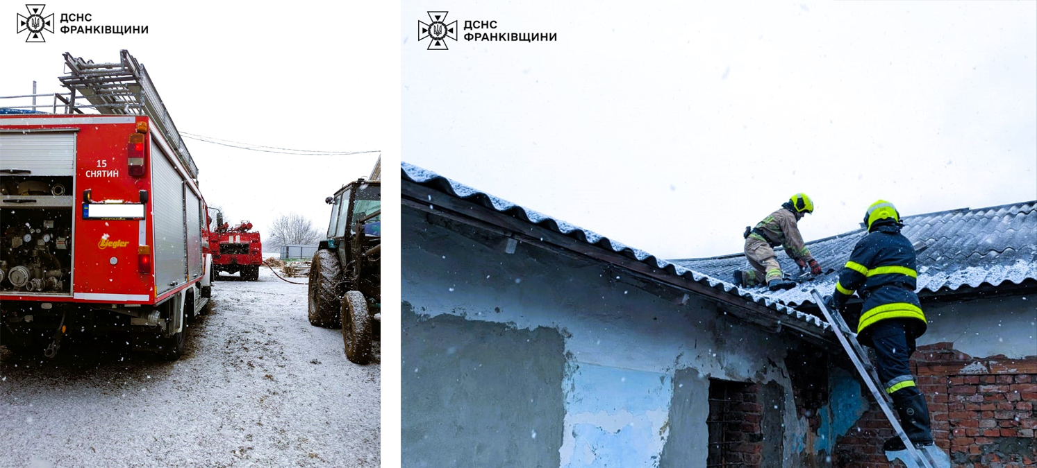 Прибувши до місця виклику рятувальники ДСНС спільно з місцевими пожежними командами вогнеборців-добровольців селища Заболотів та сіл Задубрівці, Джурів та Вовчківці оперативно ліквідували пожежу крівлі та перекриття приміщення птахоферми на площі 50 кв.м.