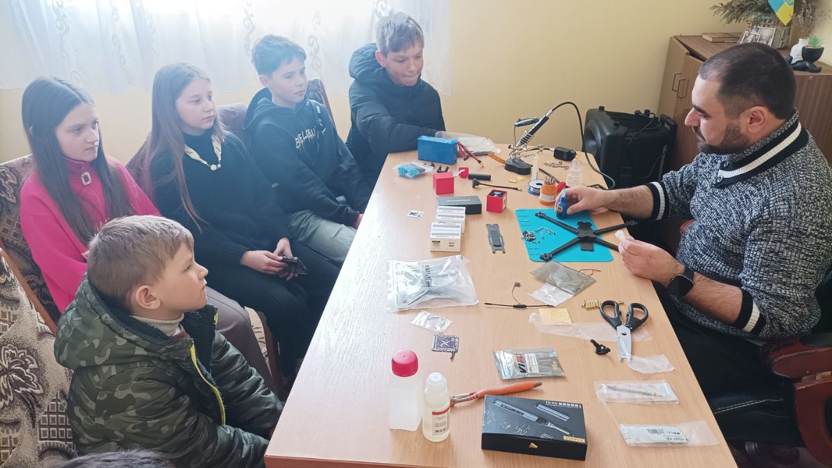 Олександр Федоришин провів майстер-клас і показав, як збирати дрони. Він також розповів про конструкцію дронів, особливості їх компонентів. Учасники зустрічі власноруч допомагали зібрати дрон для захисника із села Камінь.