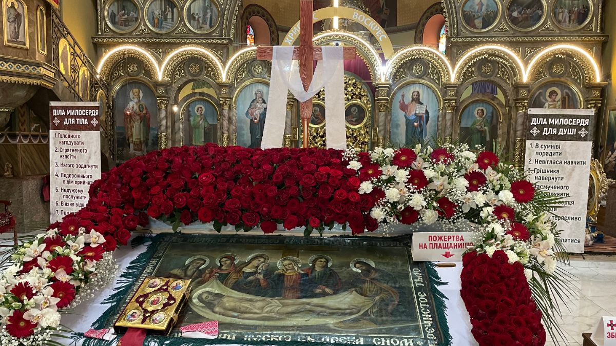 У Страсну п’ятницю Церква згадує хресні страждання та смерть Ісуса Христа. У цей день не звершується Божественна Літургія, а в храмах виставляється Плащаниця — символ похованого Спасителя. Раніше віряни могли приходити до Плащаниці впродовж усієї доби до Великодня. Та через війну та комендантську годину час відвідин нині обмежено.