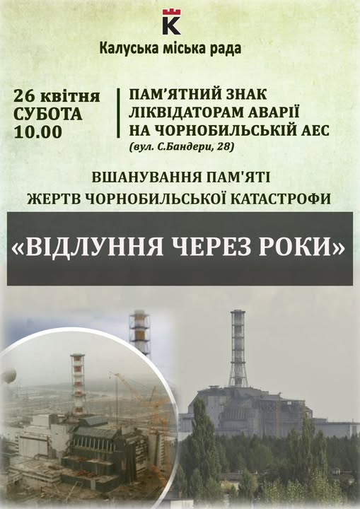 “Підтримаймо калушан, які у 1986 році стали до боротьби з грізним і невидимим ворогом, та згадаймо всіх, хто, на жаль, загинув, під час приборкання атомного монстра”, – йдеться у анонсі Калуської міської ради.