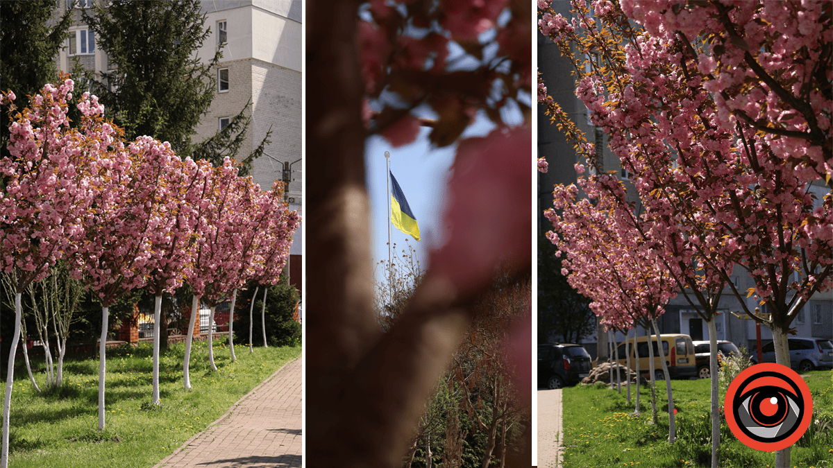 Своєрідна алею сакур журналісти нашого видання знайшли у дворі одного із будинків на вулиці Сівецькій: