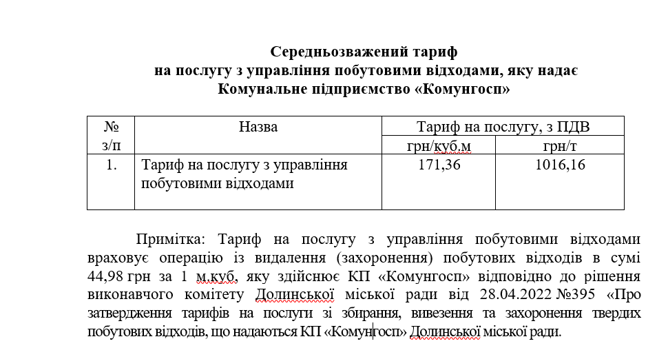 Наступним питанням у порядку денному виконкому одразу ж йшло питання “Про тарифи на послугу з управління побутовими відходами, яку надає КП “Комунгосп”.