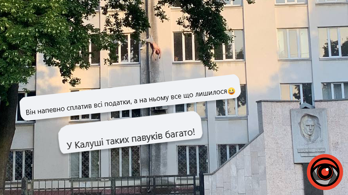 Ввечері 26 травня у Калуші чоловік без верхнього одягу ліз по стіні будинку, чіпляючись за водостічну трубу. На рівні приблизно третього поверху він звисав головою вниз. Така неоднозначна ситуація не пройшла повз увагу калушан, які почали активно коментувати ситуацію.