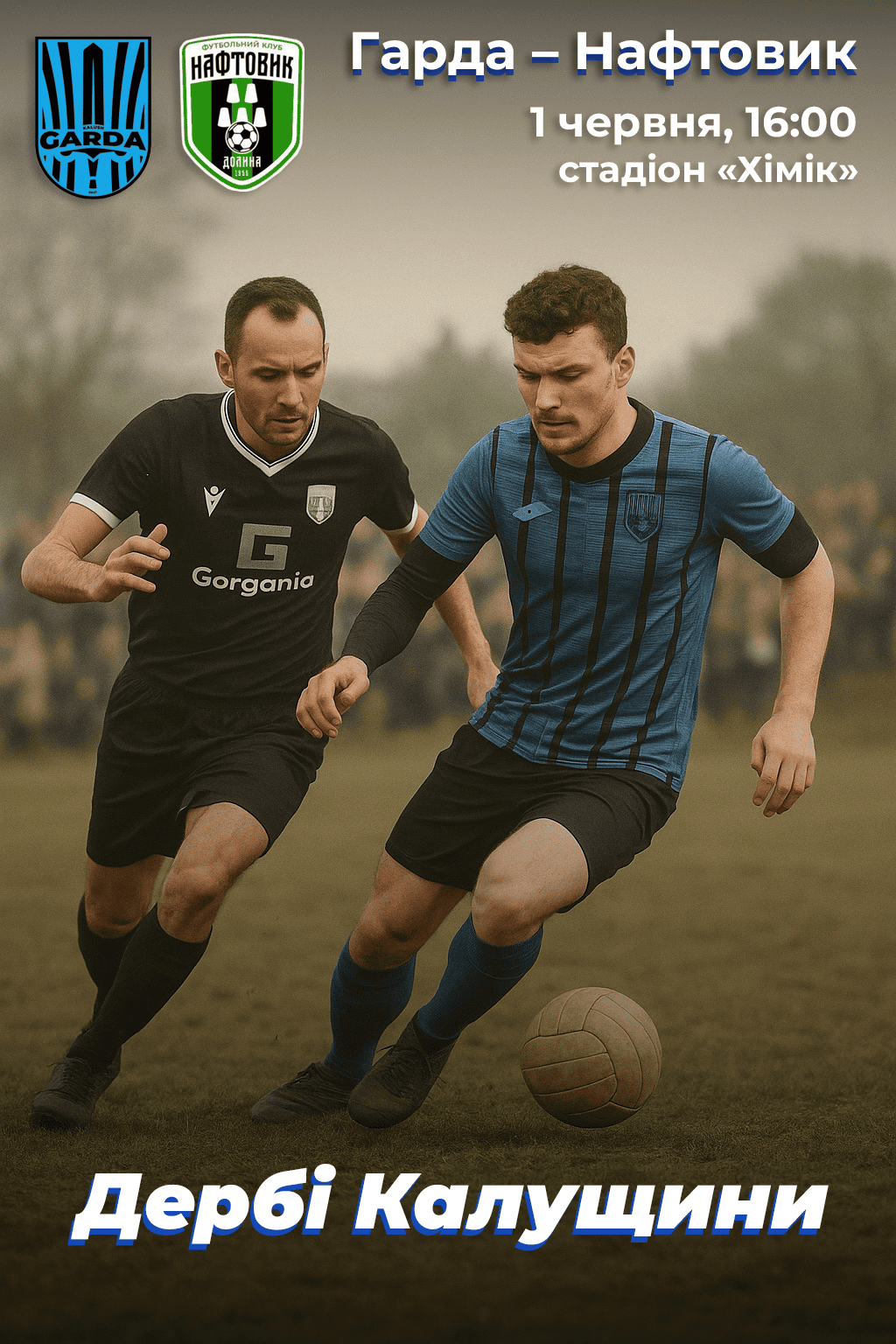 Футбольне дербі Калущини відбудеться у неділю 1 червня на стадіоні “Хімік”. Початок о 16:00. Нагадаємо, що після 14 турів чемпіонату області, калуська “Гарда” посідає 4 сходинку турнірної таблиці із 20 заліковими пунктами. Натомість суперник калуського клубу — “Нафтовик” знаходиться на 3 сходинці турнірної таблиці. Відстань між клубами становить 5 залікових пунктів.