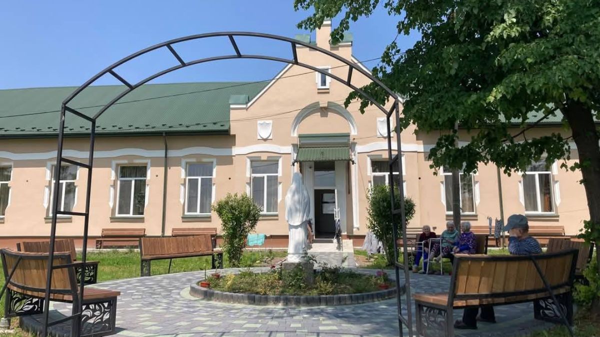 Внутрішнє подвір’я геріатричного центру, де вже стоїть статуя Пресвятої Богородиці, тепер має 12 нових лавочок для відпочинку 34 мешканців.