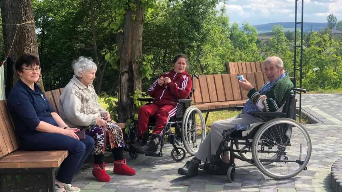 Крім того, тиждень тому внутрішній дворик збагатився ще однією важливою деталлю — тут було встановлено 12 нових лавочок. Тепер мешканці геріатричного центру мають змогу комфортно відпочивати на свіжому повітрі, насолоджуючись краєвидами та спілкуванням. У ясну погоду з дворику відкривається захоплива панорама: вид на мальовничі пагорби та навіть гори.