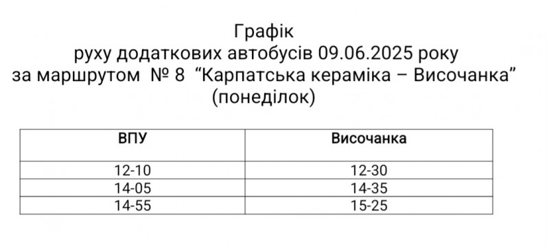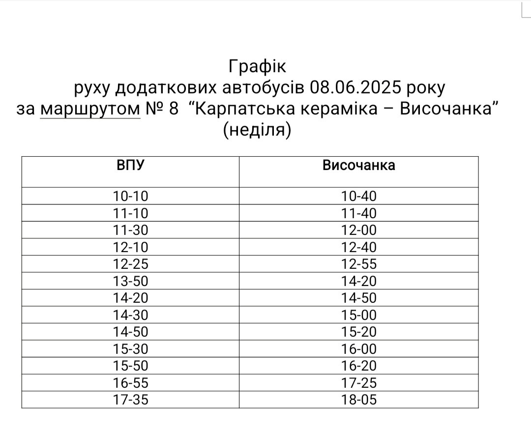 Додаткові рейси автобусів до міського кладовища на Зелені свята курсуватимуть за маршрутом №8 “Карпатська кераміка – Височанка”.