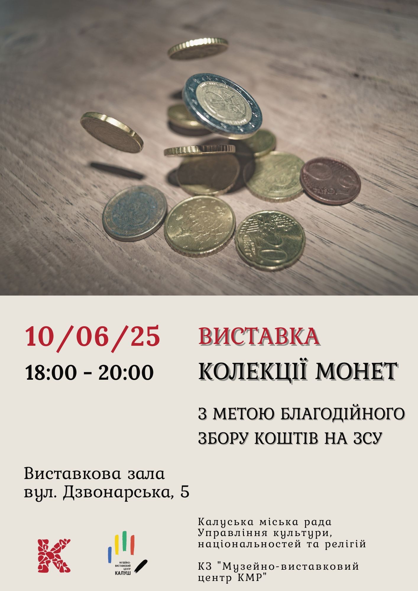 Зі слів директора КП “Музейно-виставковий центр Калуської міської ради” Олега Відливаного на виставці буде представлено зразки різноманітних монет із приватної колекції Бориса Первака. Благодійний захід організовується з метою збору коштів для ЗСУ.