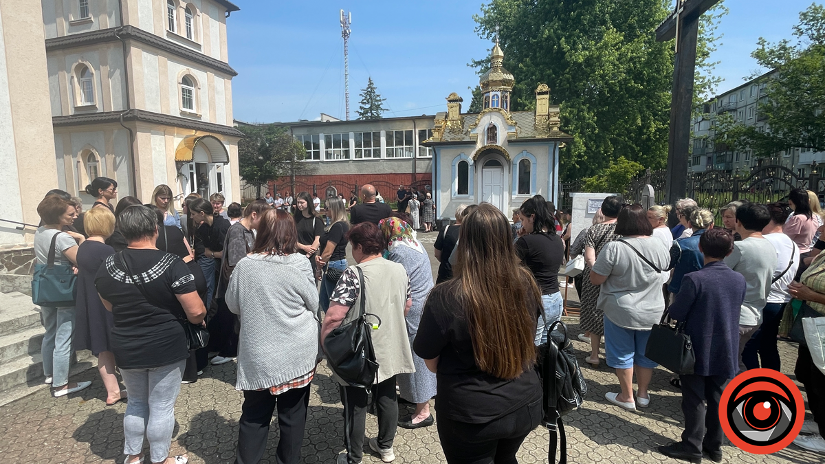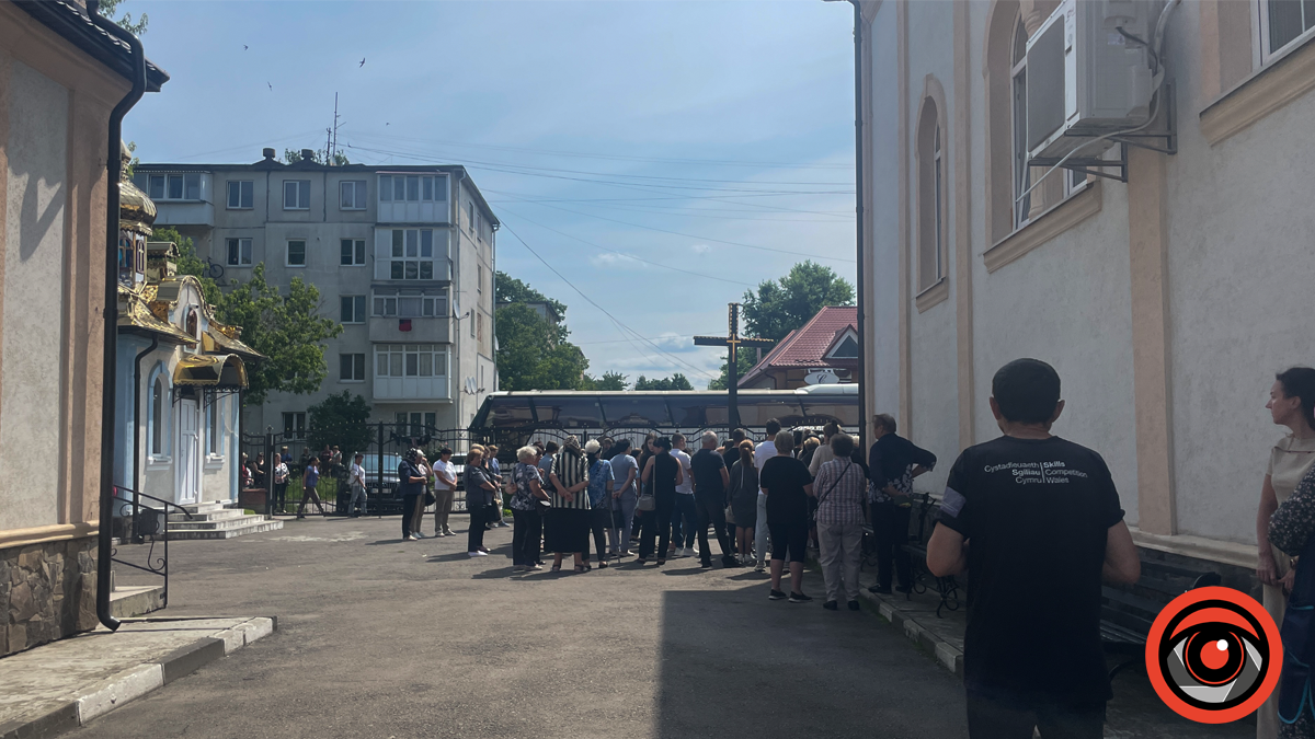 У Калуші розпочався похорон маленької Алінки, яку жорстоко позбавила життя власна матір. На подвір’ї церкви зібралося багато людей.