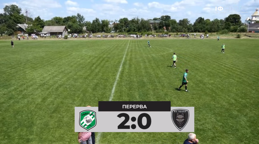 На 41 хвилині, Анатолій Дирів мчався Змістився на ударну позицію та пробив під ближню стійку, але Микола Хом’як знову рятує “Збору” і переводить м’яч на кутовий. Власне з кутового, рожнятівці забили вдруге у ворота “Збори”, чим встановили комфортний для себе рахунок ще до завершення першого тайму. Голом відзначився Василь Халусяк. Наприкінці першої 45-хвилинки “Горгани” здавалося були готові втретє забивати у ворота Хом’яка, але м’яч пролетів повз дальню стійку.