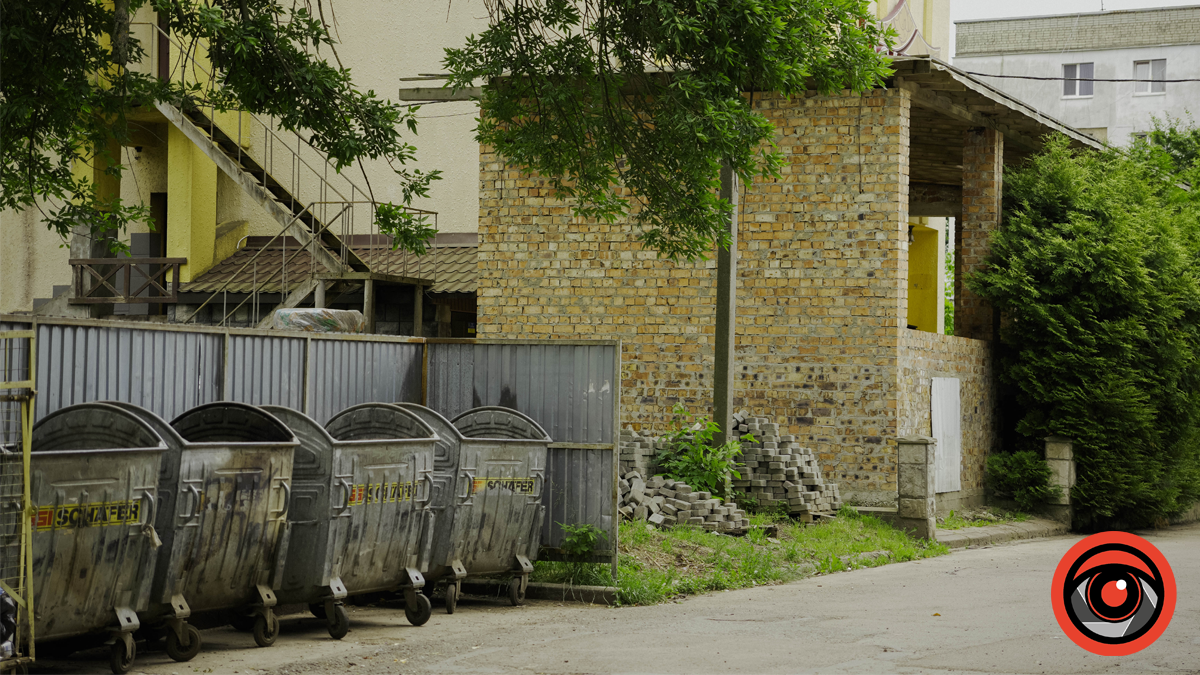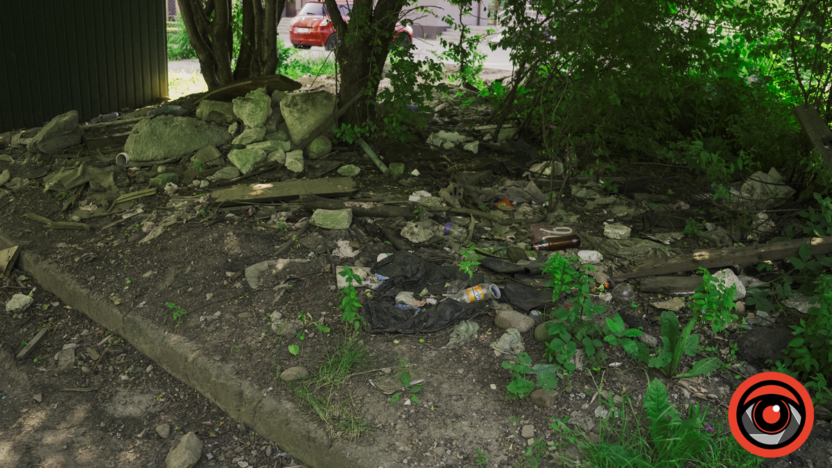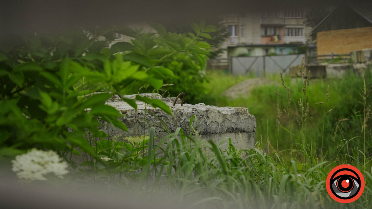 Житловий довгобуд — у самісінькому центрі Калуша, а територія — заросла деревами та зеленню. Єдине, що видніється, то це декілька бетонних блоків…