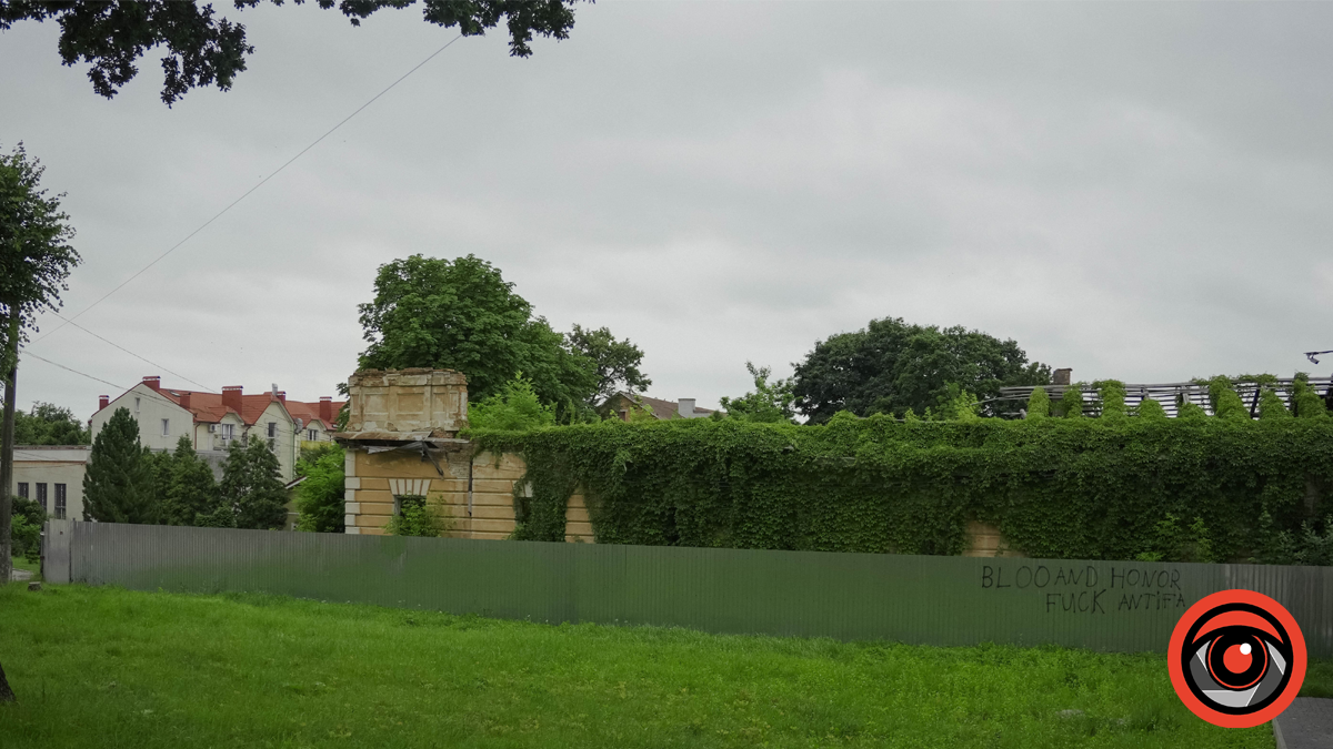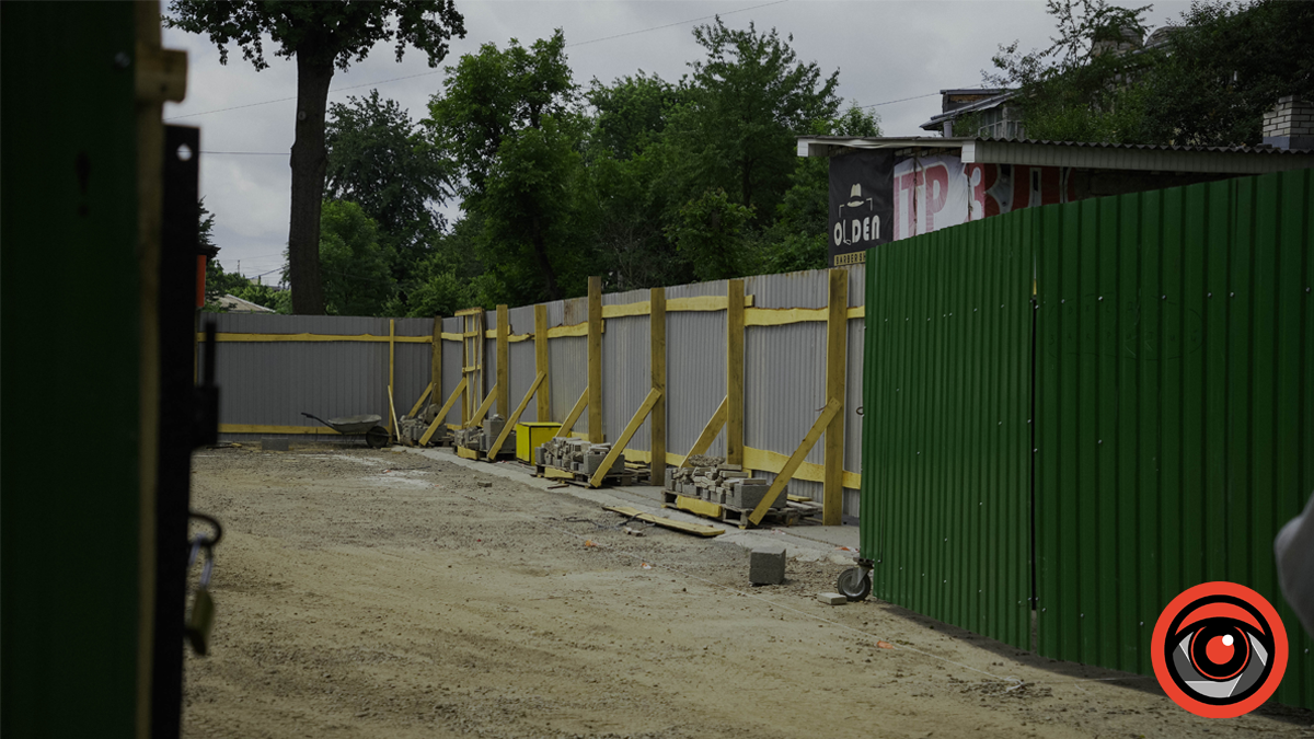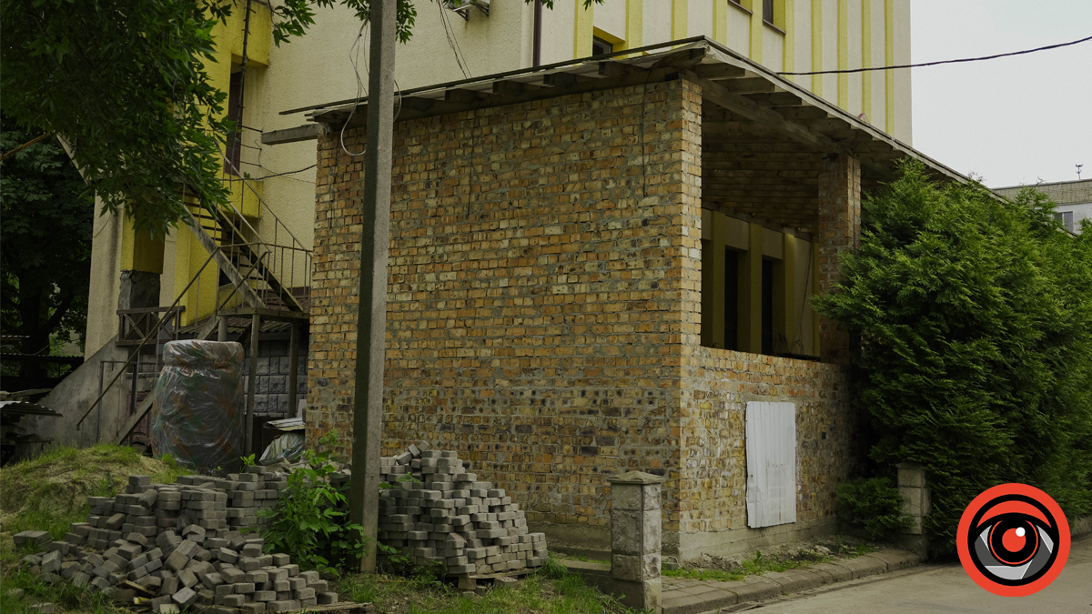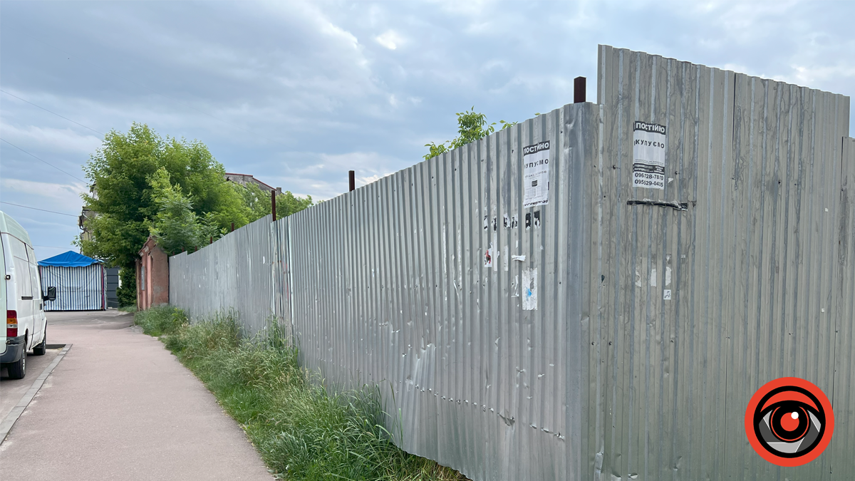 На паркані маркером написано: “Обережно!”. На території ведуться активні роботи.