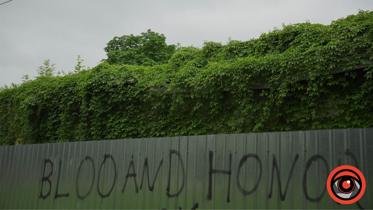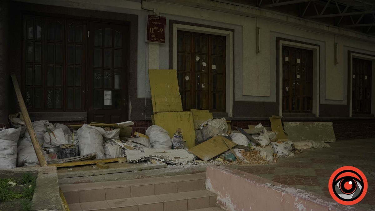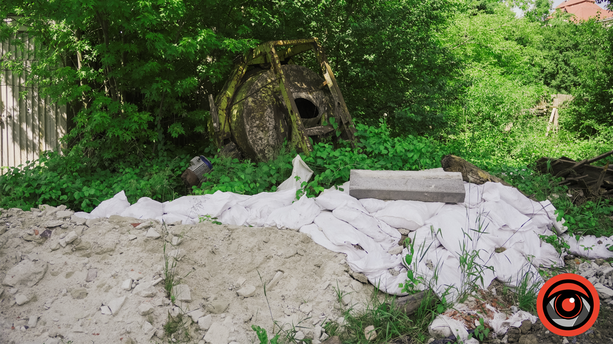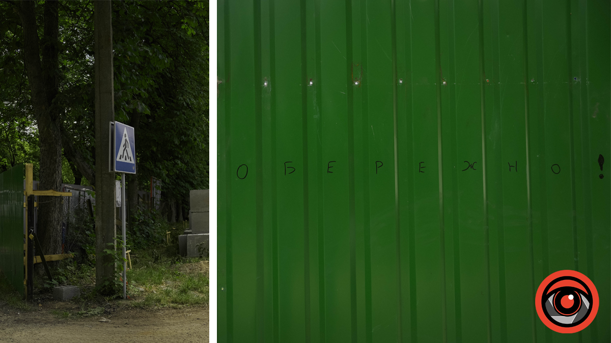 На паркані маркером написано: “Обережно!”. На території ведуться активні роботи.