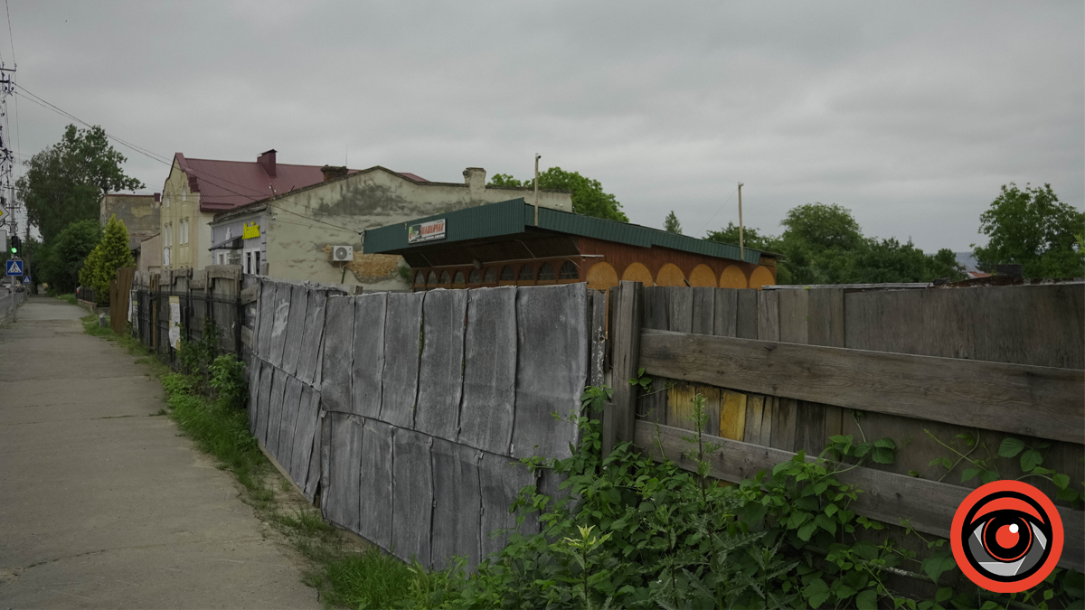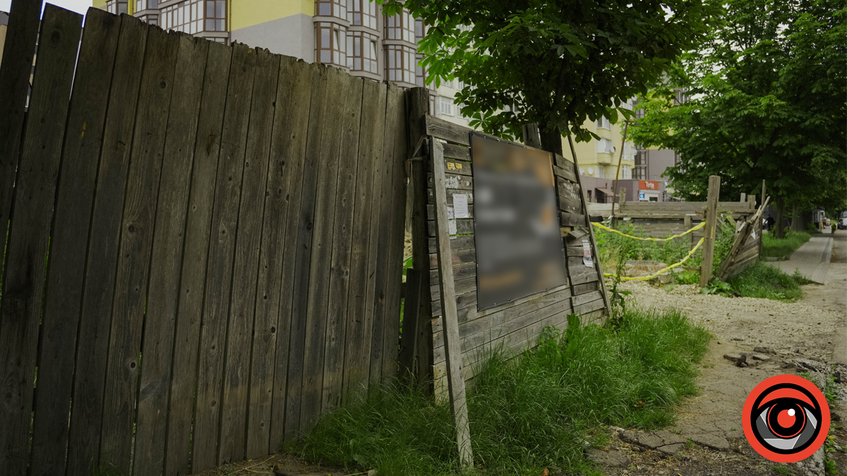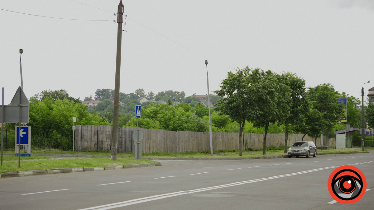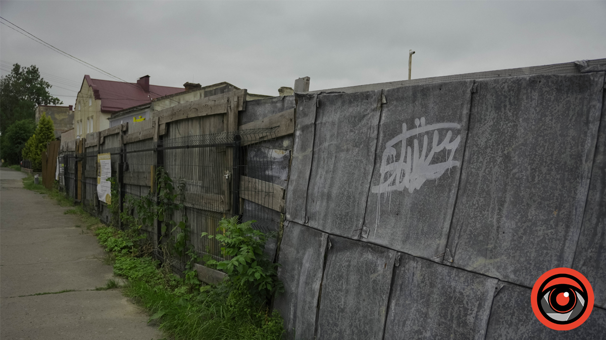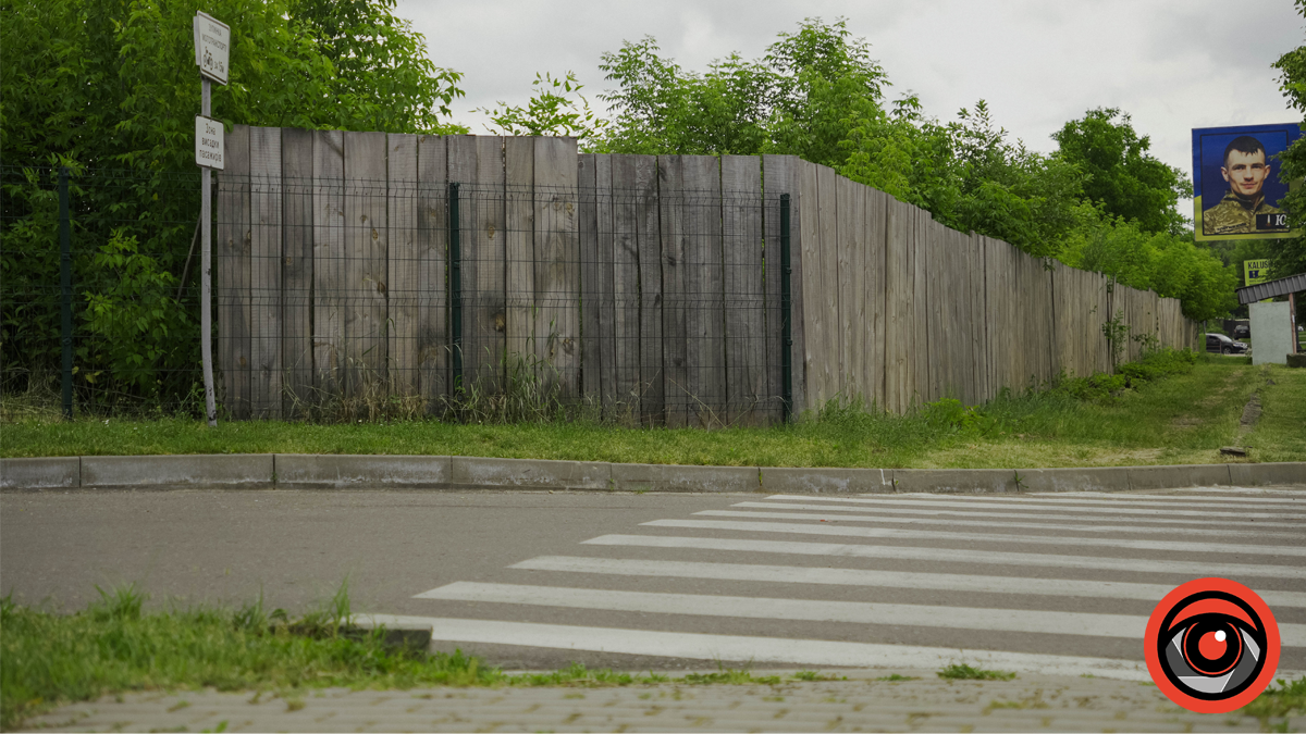 Земельну ділянку, яка розташована позаду автобусної зупинки і поруч з автозаправкою на вул. Євшана кілька років тому міська рада віддала в оренду під будівництво дитячого розважального центру. Повномасштабна війна, вірогідно, призупинила плани інвестора. Проте, паркан тут стоїть. І деякі його елементи вже хиляться. І хоча місце тут не надто людне, проте, долю краще не випробовувати…