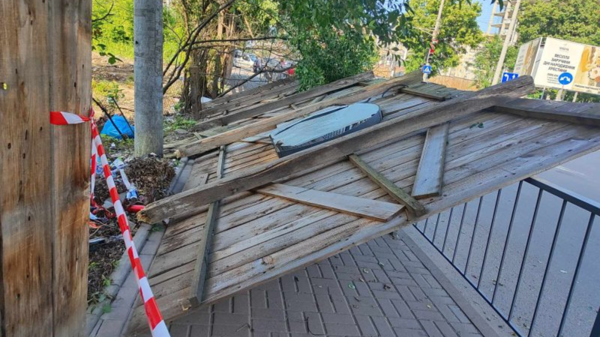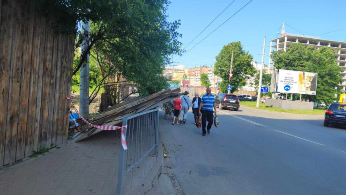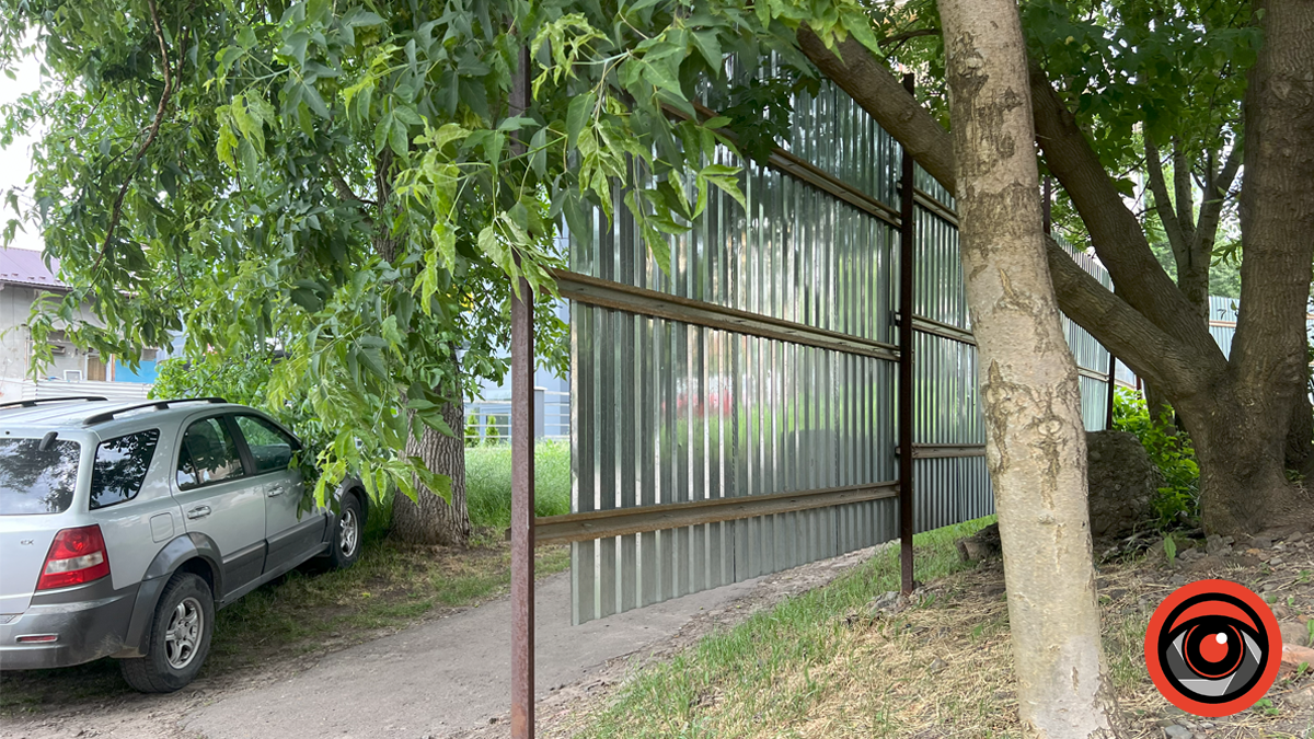 Паркан тут справді є. Але зі всіх перевірених цей виглядав найгірше і як такий, де щось може впасти на перехожого і без вітру.