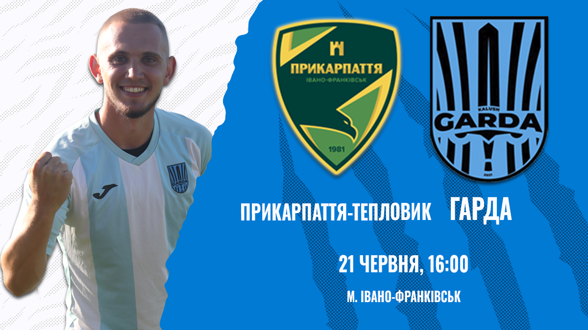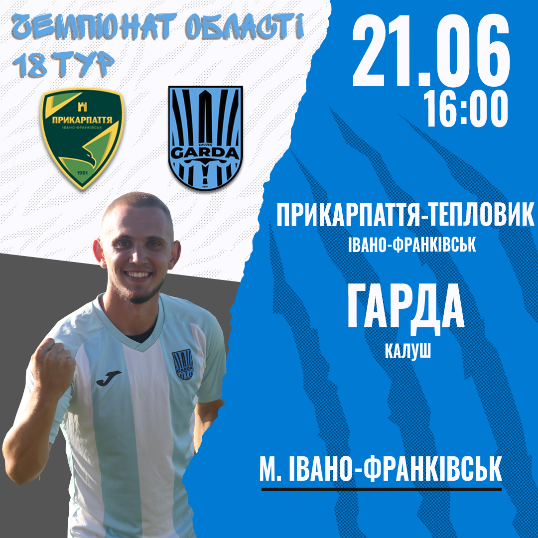 Тож, у рамках 18 туру Чемпіонату області, ФК “Гарда” з Калуша зіграє у Івано-Франківську останній футбольний поєдинок проти “Прикарпаття-Тепловика”. Втім, матч відбудеться у суботу, 21 червня. Початок матчу о 16:00.