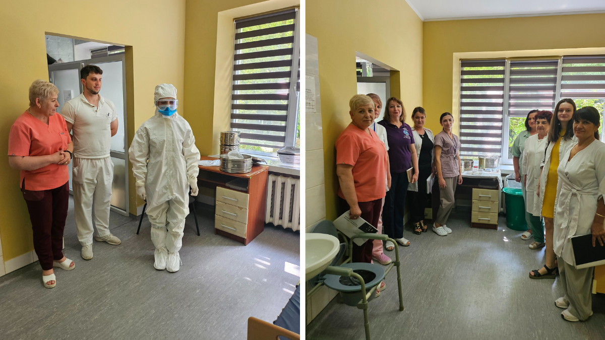 Протягом навчання медиків обговорили та продемонстрували на практиці дії фахівців відділення екстреної невідкладної медичної допомоги при поступленні пацієнта з підозрою на холеру.