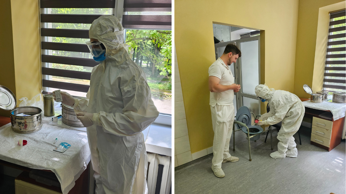 У тренінгу також взяли участь фахівці відділу епідеміологічного нагляду та профілактики інфекційних хвороб Калуського районного відділу ДУ “Івано-Франківський ОЦКПХ МОЗ” в рамках надання організаційно-методичної та консультативної допомоги. Завідувачка цього відділу Тетяна Чернієнко повідомила, що під час навчання медиків було обговорено та продемонстровано на практиці дії фахівців відділення екстреної невідкладної медичної допомоги при поступленні пацієнта з підозрою на холеру. Акцент робився на послідовності одягання та знімання засобів індивідуального захисту, їх подальшого збору та відправки на утилізацію. Окремо було продемонстровано методику забору проб для лабораторної діагностики, включаючи використання швидких тестів на холеру.