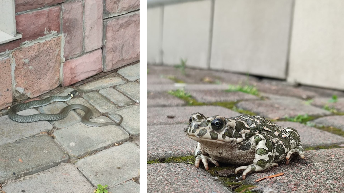 На території Калуського наукового ліцею імені Дмитра Бахматюка помітили та одночасно зафіксували жабу та вужа.