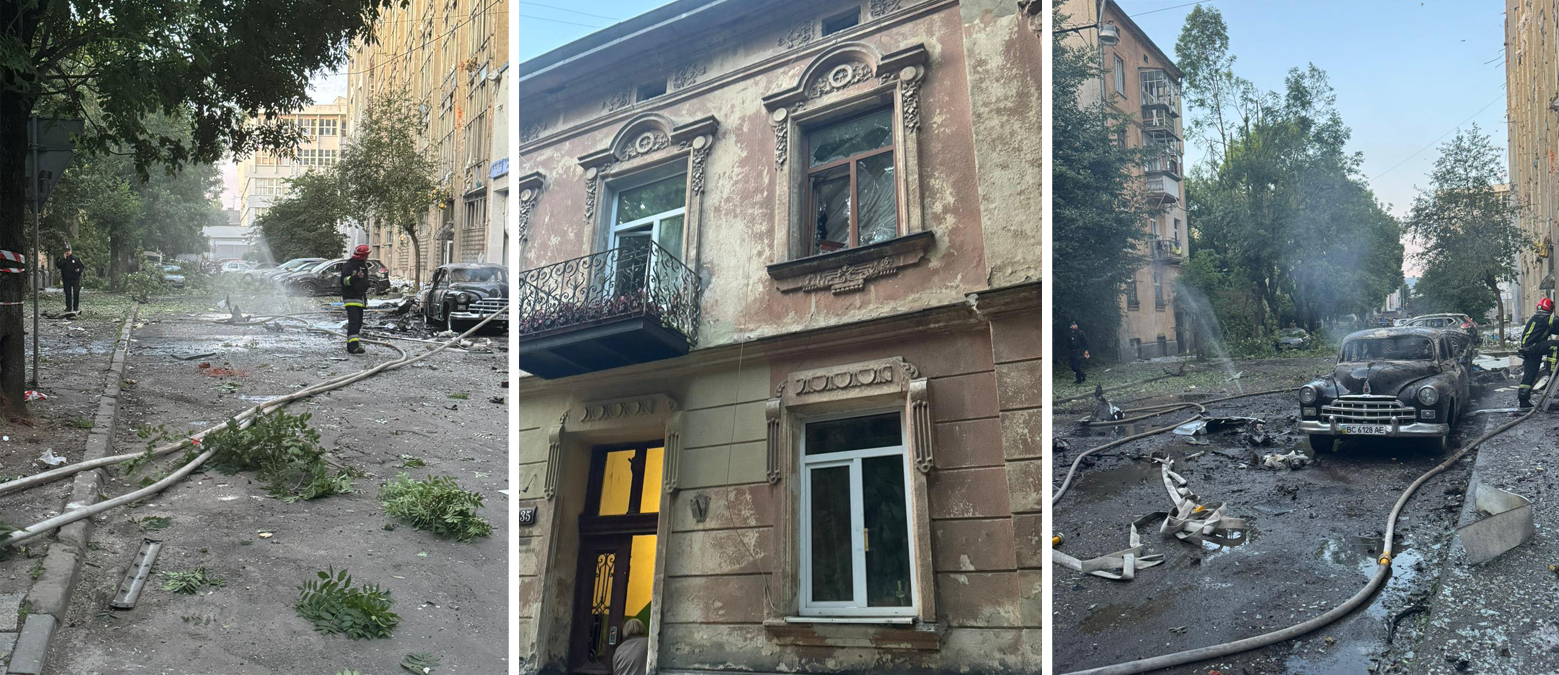 “Унаслідок ворожої атаки на вулиці Митрополита Андрея у Львові пошкоджений двоповерховий житловий будинок. Є часткове руйнування підʼїзду. Стався витік газу й води. Попередньо загиблих і травмованих немає. Пожежі нема. На місці працюють 20 рятувальників та інші служби”