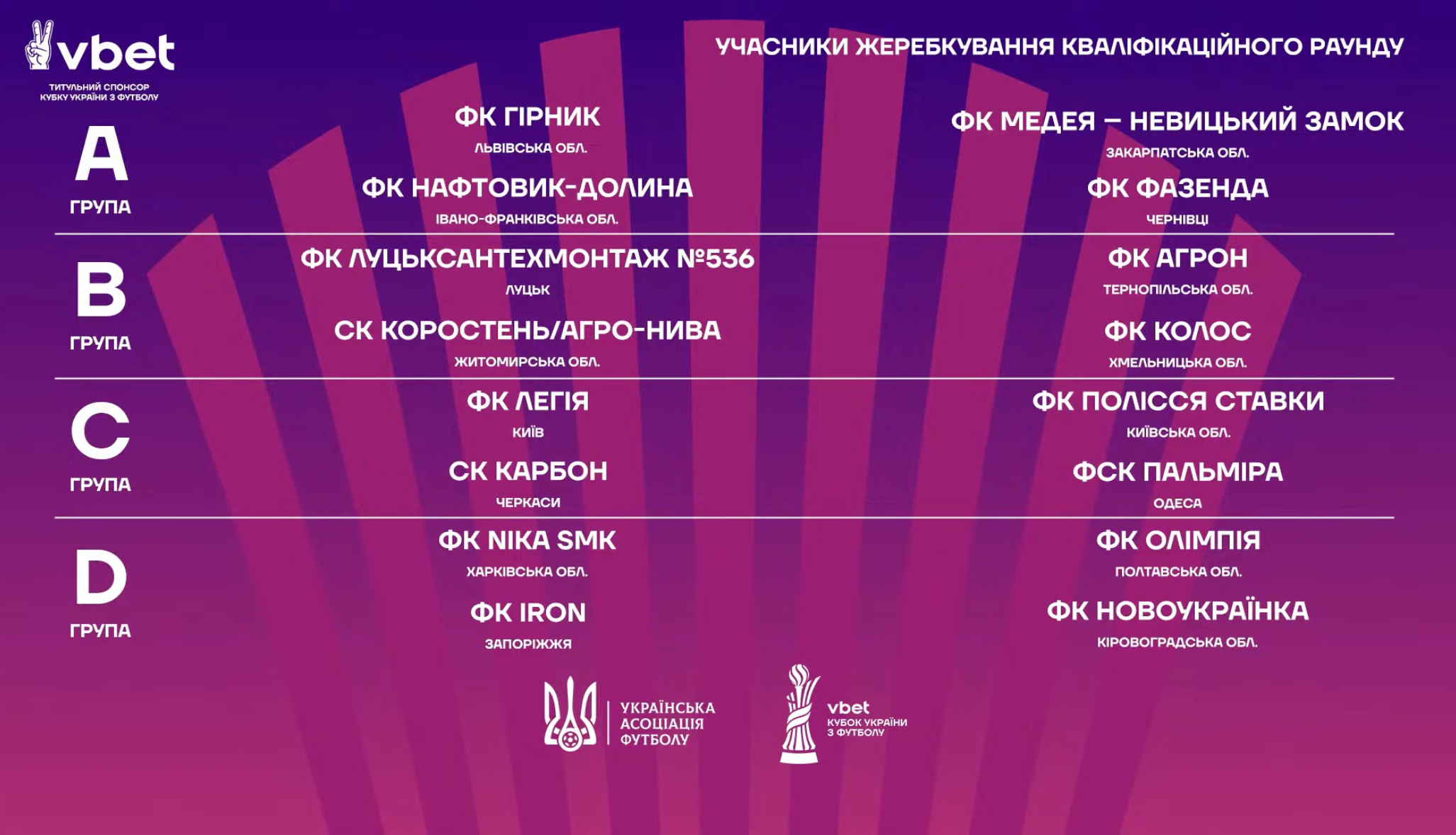 Нововведення торкнулися й самого Кубка. Вже відомо, що максимально розширили географію, за рахунок залучення аматорських клубів із різних регіонів України. Новим стало й те, що учасників кваліфікаційного етапу — 16 представників регіональних асоціацій футболу поділили на 4 групи за географічним показником близькості одна до одної: