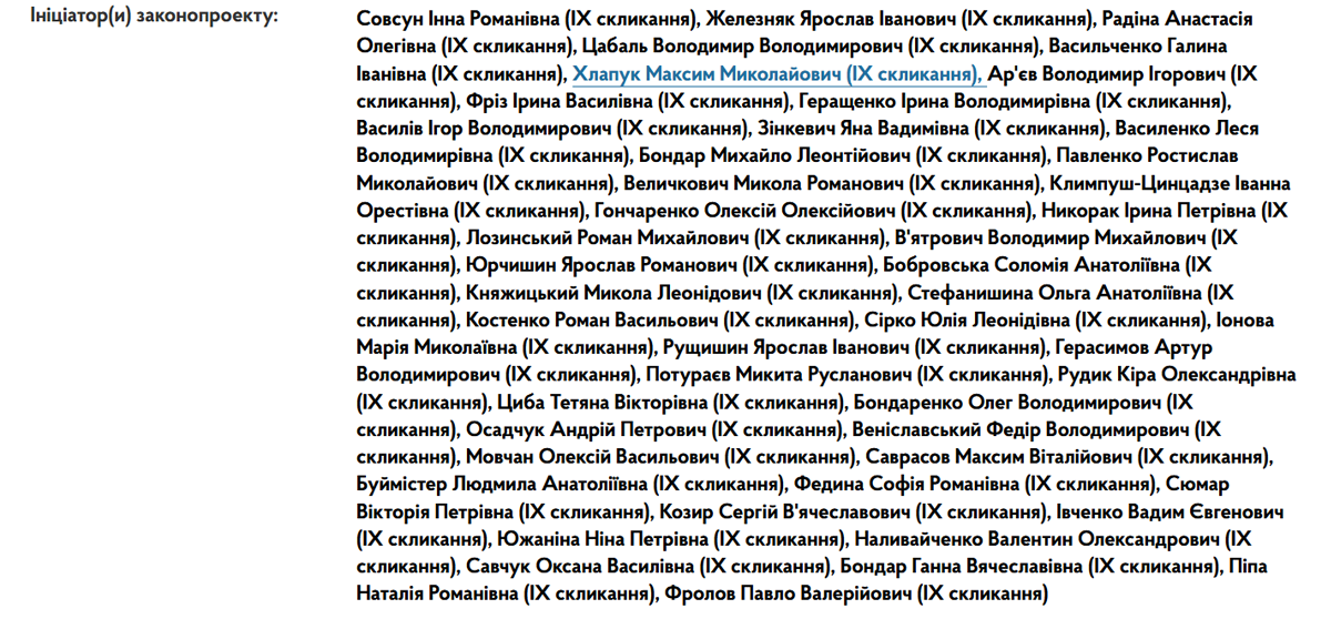 Ініціатори законопроєкту щодо скасування норм закону №12414. Джерело: Верховна Рада України.
