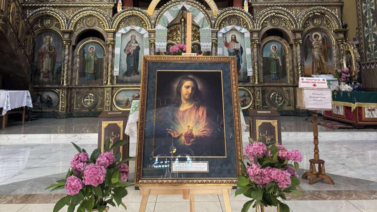 У храмі Святого Архистратига Михаїла УГКЦ міста Калуша зустріли ікону Пресвятого Серця Ісуса — копію відомого образу, написаного майстром-іконописцем Помпео Батоні та благословеного у 2024 році Папою Франциском.