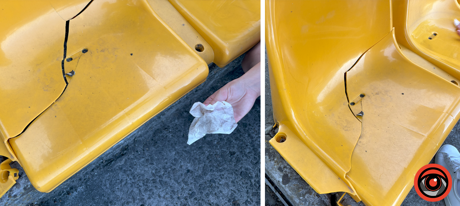 Журналістам нашого видання потрібно було витратити чи не пів упаковки вологих серветок, щоб привести до ладу місце, аби на нього можна було сісти. Але були й кмітливі, які просто постелили поліетиленовий пакет, щоб не забруднитися.