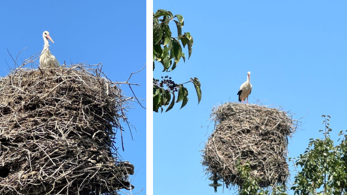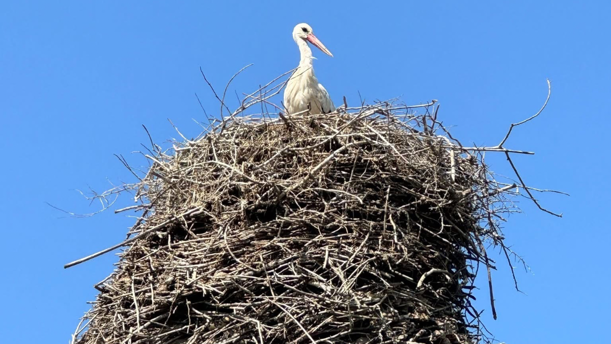 Жителі села Берлоги кажуть, що гніздо були звите на недіючому електричному стовпі більше 10 років тому. Тоді воно було маленьким, але з кожним роком збільшувалося і збільшувалося. Днями місцевий мешканець зафіксував самотнього лелеку, який грівся на сонечку.