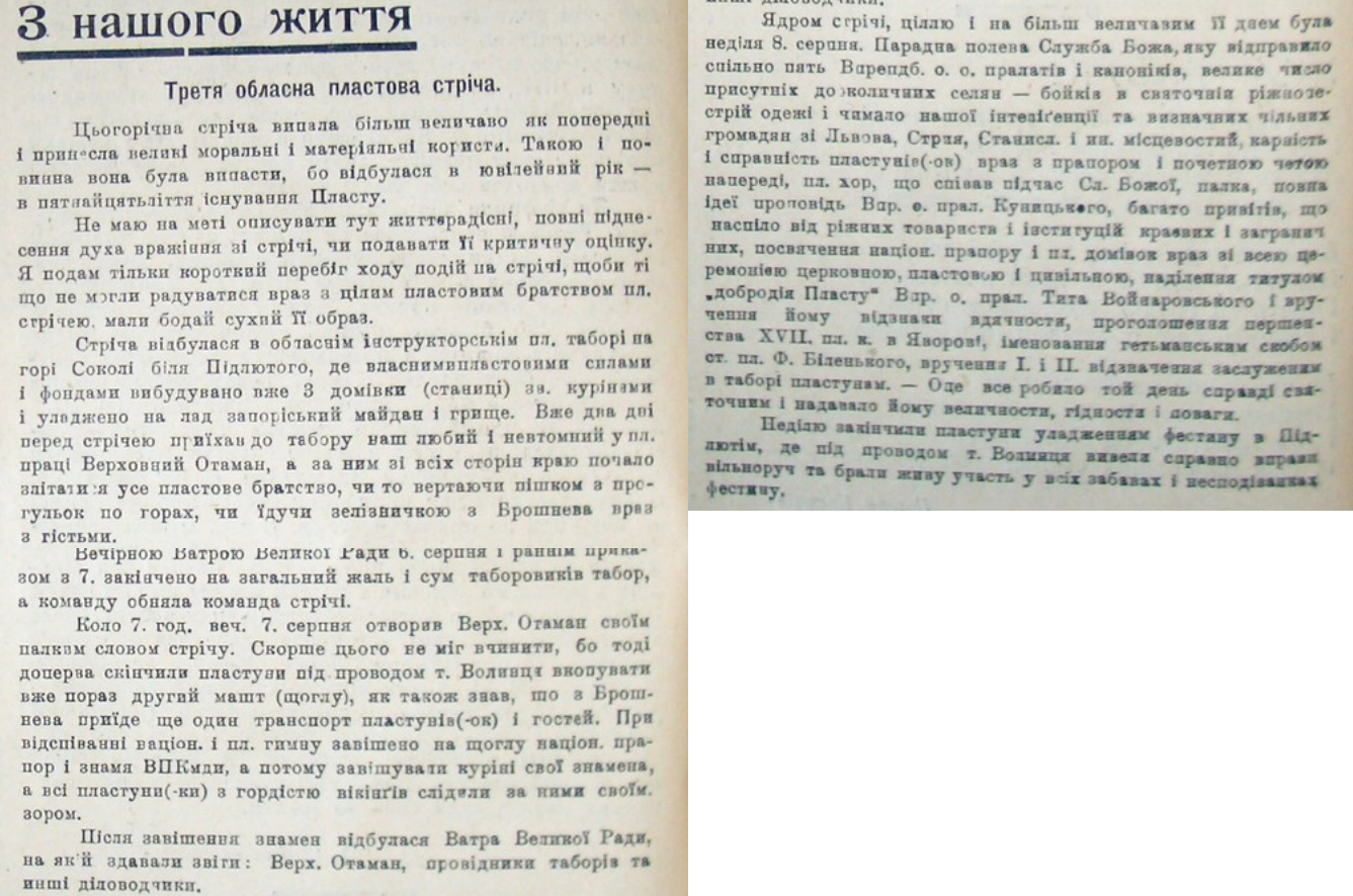 Витяг із часопису Пласту “Молоде життя” (серпень-жовтень 1926 р.)