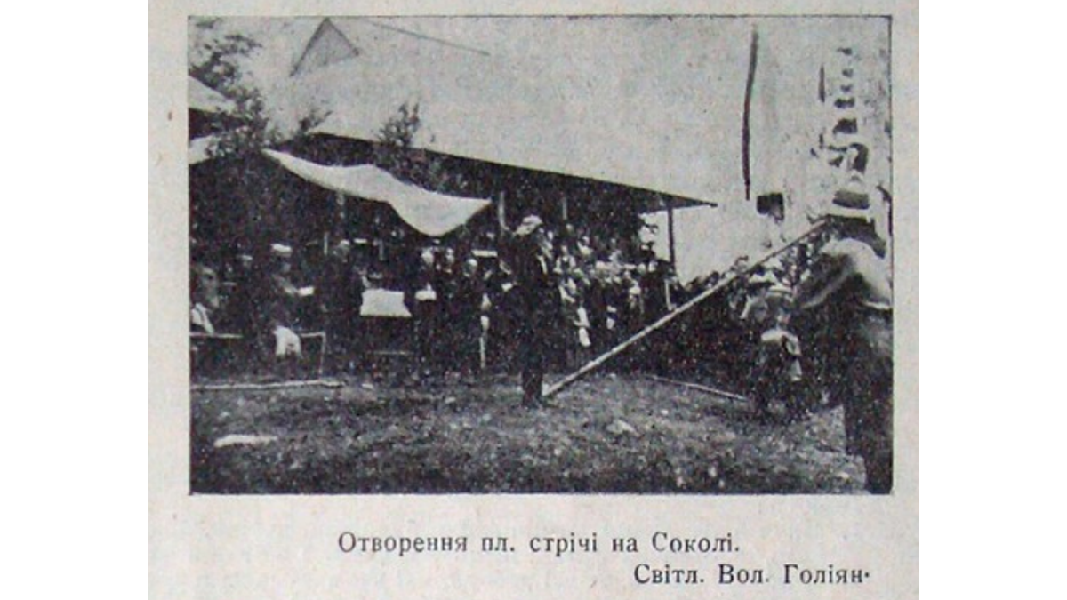 Відкриття пластової зустрічі у Соколі. Серпень 1926 р. Джерело: “Молоде життя” (серпень-жовтень 1926 р.)