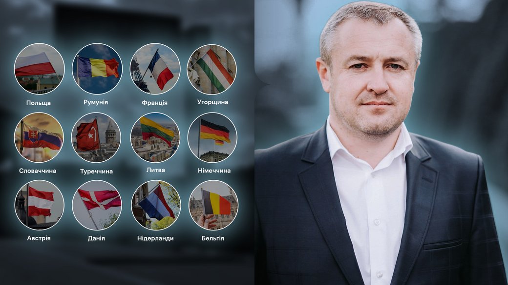 Які країни відвідував голова Вигодської громади Микола Мацалак від початку повномасштабного вторгнення. Інфографіка Суспільного