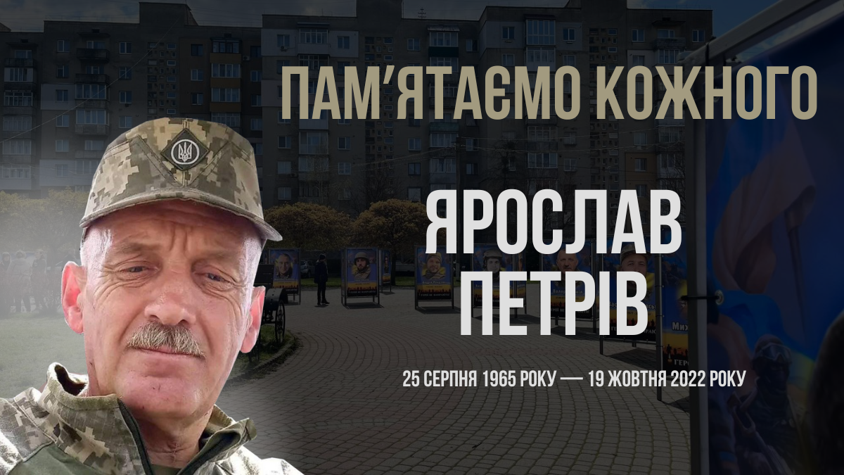 Ярослав Петрів народився 25 серпня 1965 р. у с. Мислові.  28 лютого 2022 року Військовослужбовець із Калуської територіальної громади Ярослав Петрів був призваний на військову службу до лав Збройних Сил України. Воїн героїчно протистояв російському ворогу. Самовіддано захищав свободу та незалежність нашої держави, українського народу.