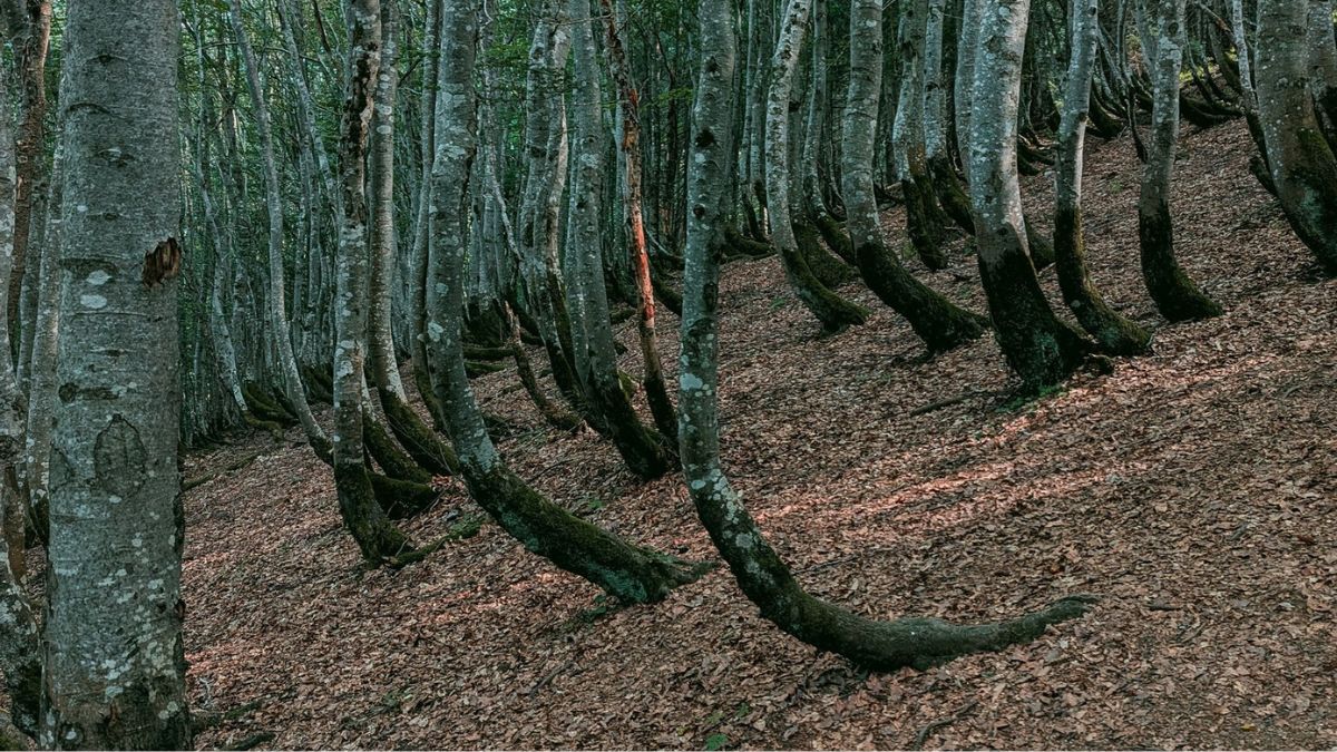 Дослідник рідного краю Андрій Тимків з Калущини нещодавно зробив цікаве відкриття під час мандрівки в Карпати. Поблизу полонини Хом’яків йому вдалося зазнимкувати незвичайний феномен – масово викривлені дерева.