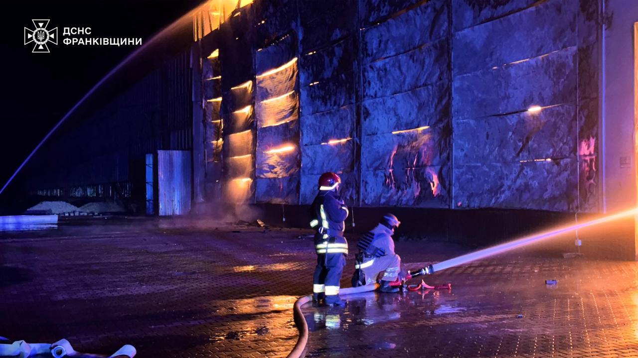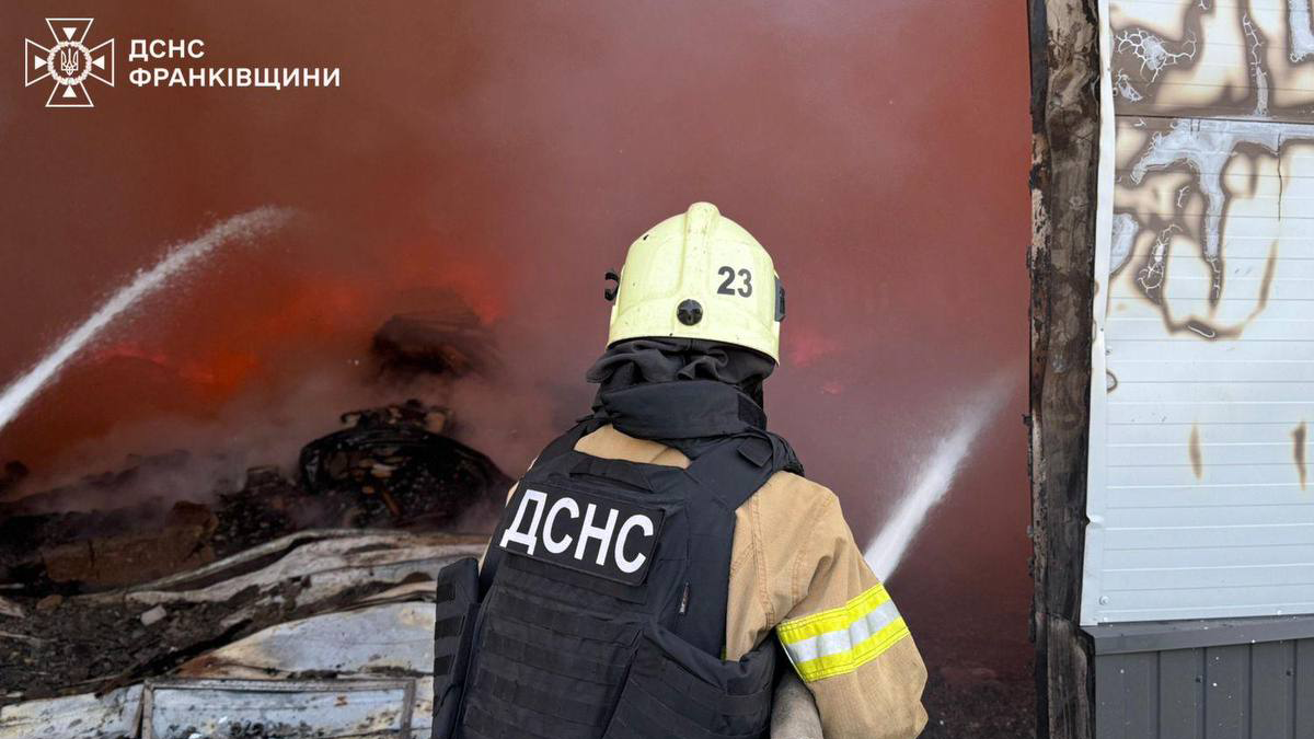 На Івано-Франківщині рятувальники ліквідовують масштабну пожежу, що виникла внаслідок російського обстрілу
