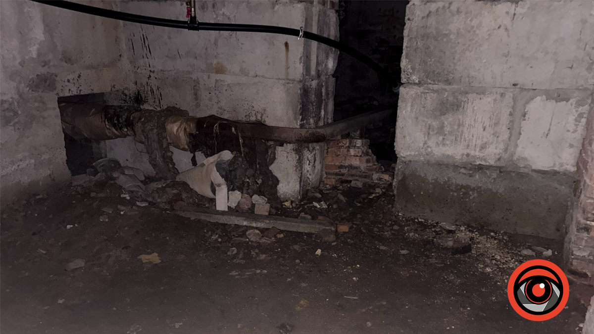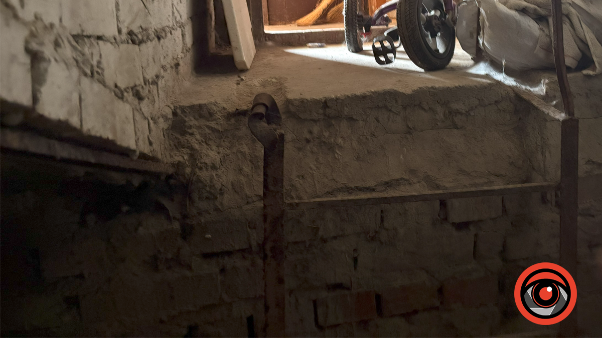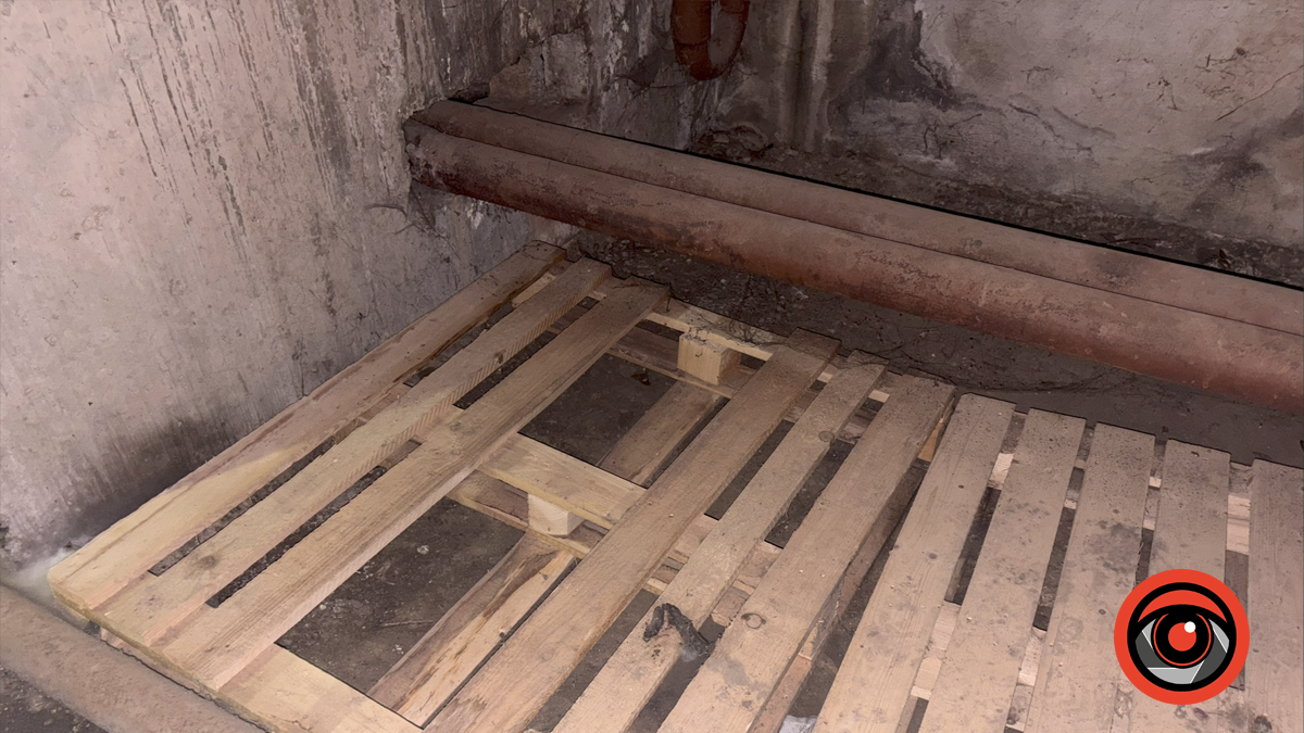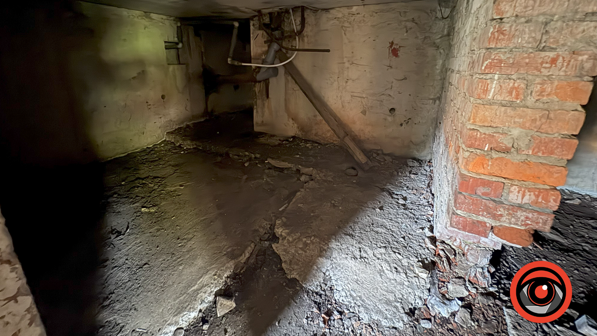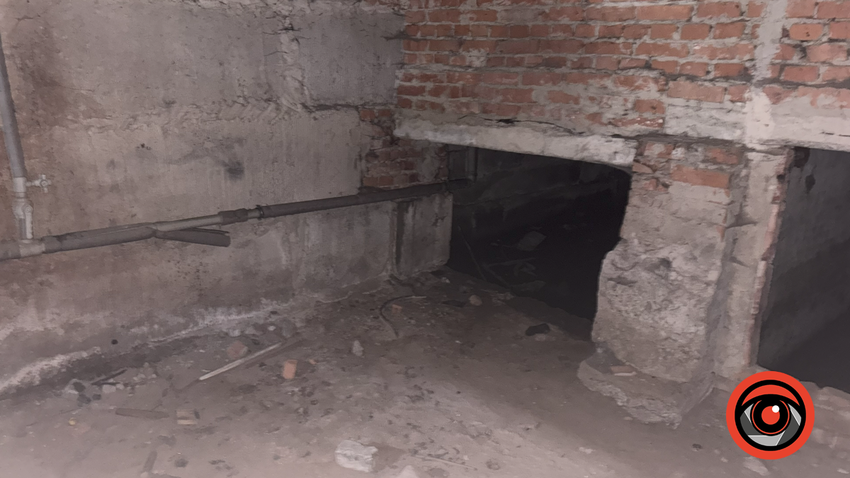 В укритті на вул. Грушевського, 99 вразила стіна, що хиталася. Знаходиться вона у першому приміщенні, в яке люди потрапляють з входу. Стіна — узагалі не тримається стелі, що робить перебування тут людей чи не ще більш небезпечним для здоров’я і життя, аніж перечікування повітряної тривоги десь на вулиці.