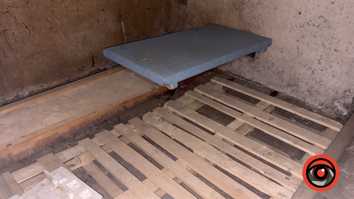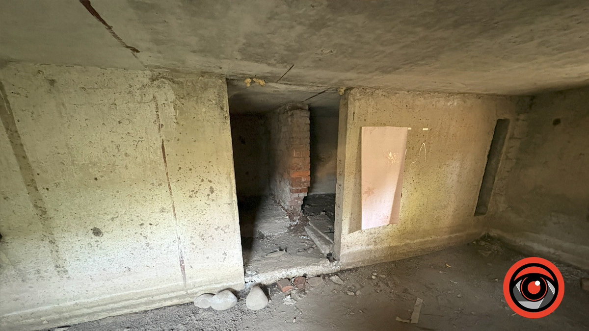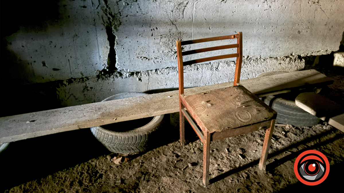 Перше укриття одразу дало про себе знати – наклейка, випробувана часом чи мешканцями, ледь видніється на дерев’яних дверях. Ноу-хау даного укриття є його окультурення килимом, що робить його дещо затишнішим, попри стан загалом.