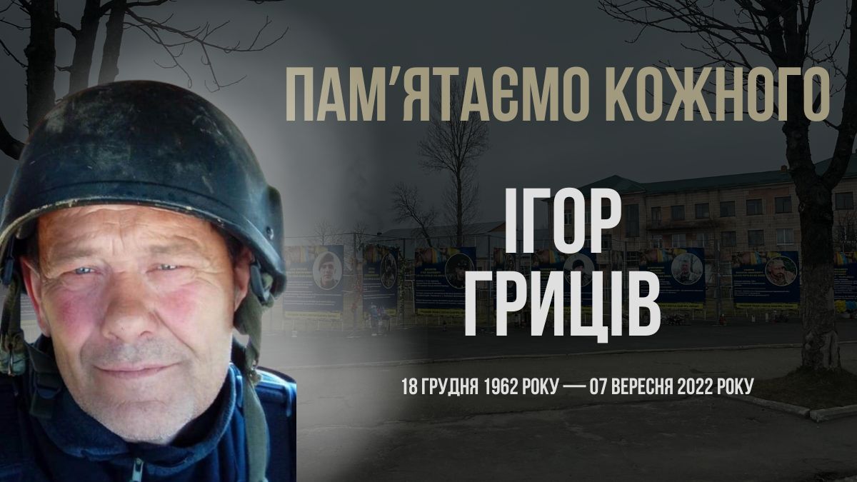 7 вересня 2022 року поблизу села Безіменне, що на Миколаївщині, бійці 1-ї батареї під час наступальних дій були жорстоко атаковані ворогом артилерійським вогнем. Саме тоді зв’язок з 59-річним Ігорем Грицівим обірвався, він тривалий час вважався зниклим безвісти. І тільки 30 жовтня 2023 року надійшов висновок відповідної експертизи щодо ідентифікації тіла.