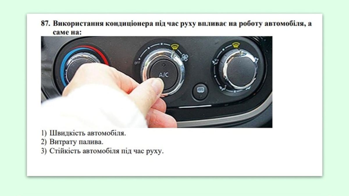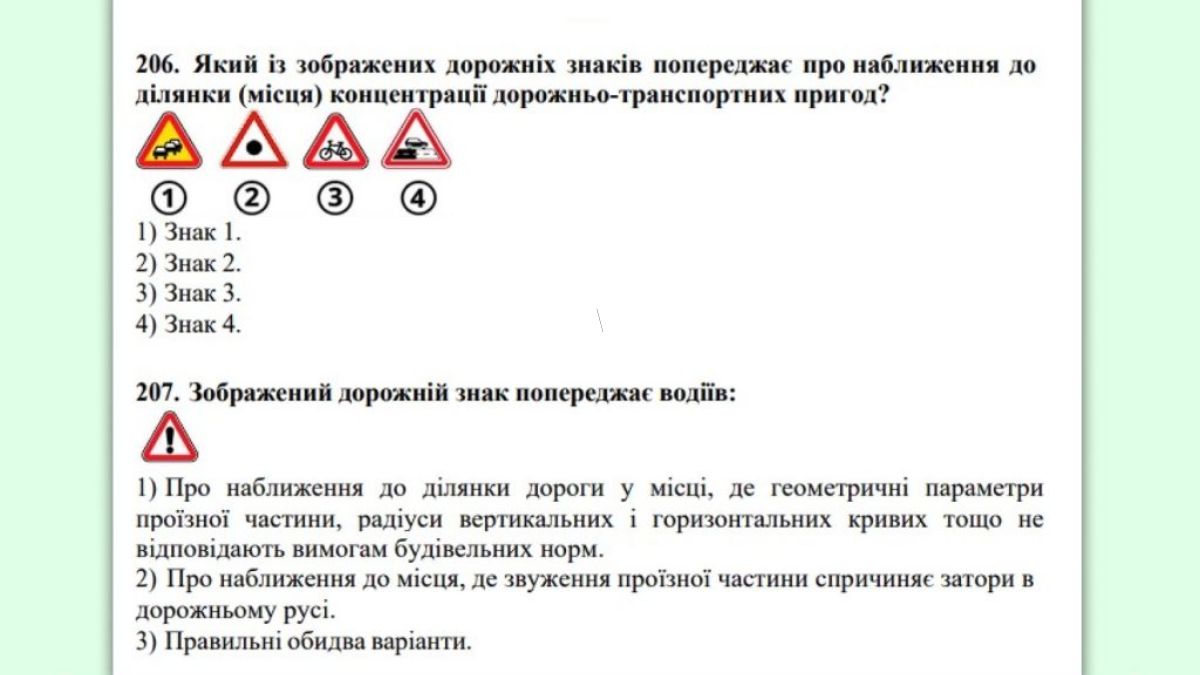 Так, у розділі «Дорожні знаки» змінили формулювання питань №206 та №207, у розділі «Дорожня розмітка» оновили завдання №9, №10 та №13 відповідно до Постанови КМУ №364 від 1 квітня 2025 року, а у розділі «Основи безпечного водіння» змінили питання №87 про вплив кондиціонера на роботу автівки.