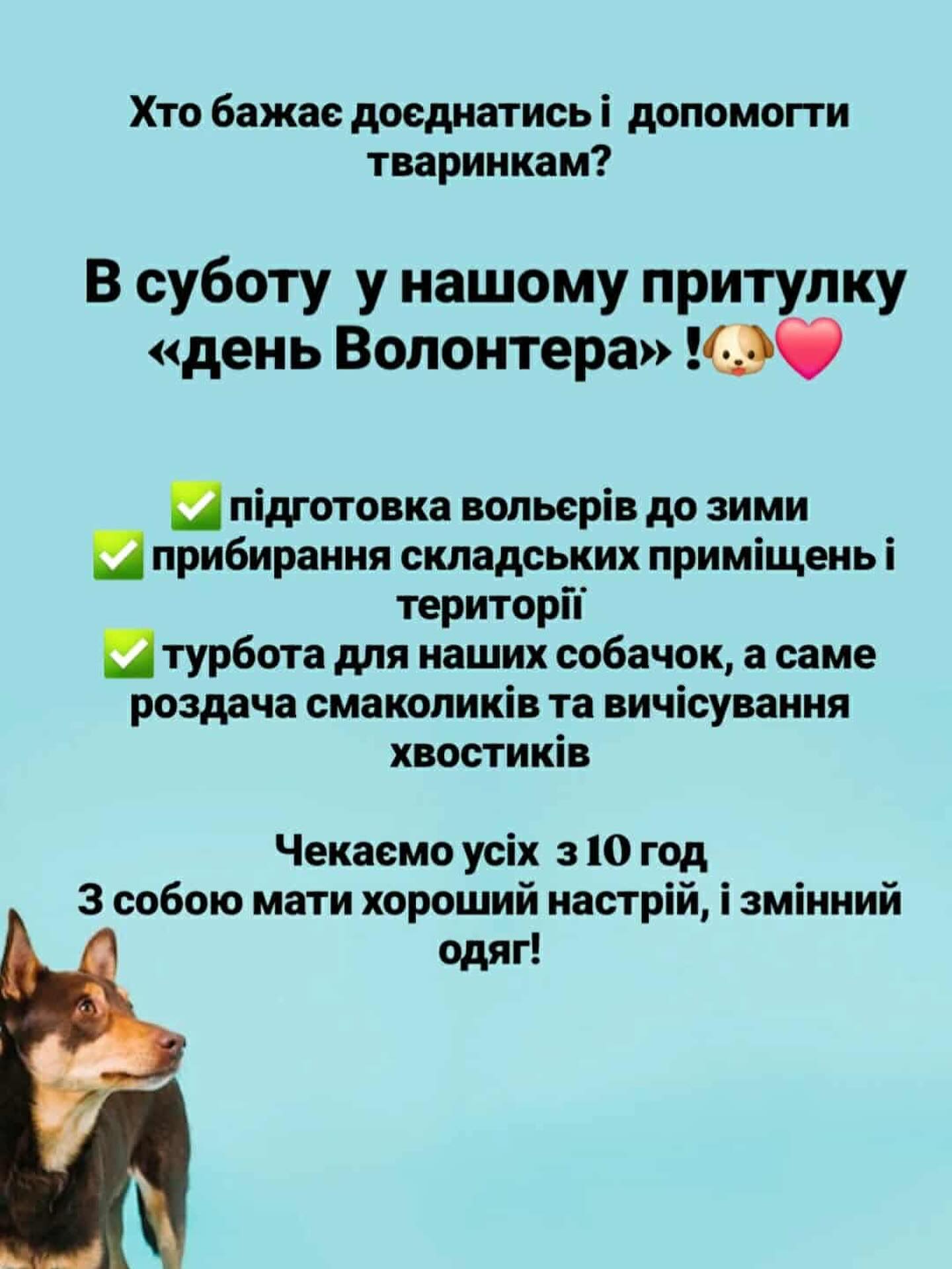 Вольєри потрібно підготувати до зими, а саму територію та допоміжні приміщення — прибрати. Тому волонтерам притулку потрібні додаткові робочі руки.