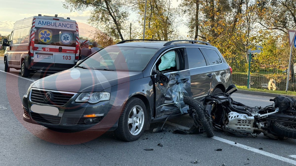 Удар мотоцикла припав саме на передні дверцята та бік автомобіля з боку водія легковика. У якому він стані, наразі невідомо.