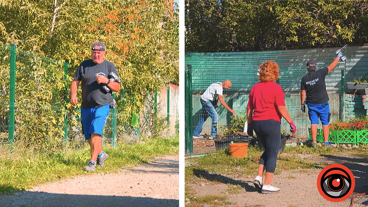“Озброївшись” віниками, тачками та іншим необхідним інструментом, хлопці та дівчата починають велике прибирання. Серед тих, хто активно допомагає – Іван. Сьогодні його було видно всюди: щось прикрутити, оглянути — він одразу там, де потрібен найбільше. Та сьогодні разом із іншими хлопцями у нього не менш важливе завдання — очистити територію від заростей та трави.