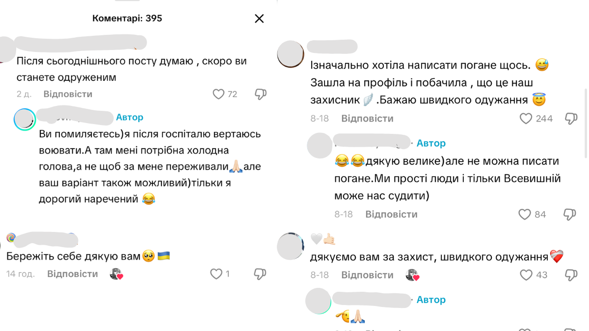 Щодо самого контенту, який публікує боєць, наприклад, у своєму ТікТок, то він заслуговує окремого огляду. Можливо, навіть не журналістського… Зауважимо, що виглядає воїн уже цілком здоровим: нога, судячи з публікованих кадрів, зажила. Загалом — дуже багато цивільного контенту й чомусь нерідко — з підписами російською мовою.