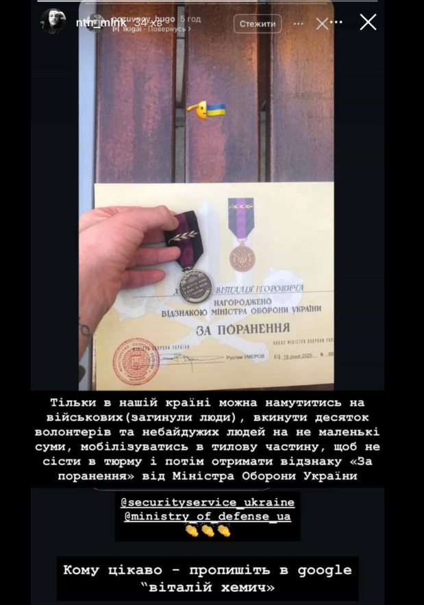 Щодо самого поранення, то про нього Віталій Хемич розповідав у своїх соцмережах: викладав відповідні фото, публікував відео… Перший контент на цю тему з’явився орієнтовно у жовтні-листопаді 2024 року. Тобто нагородили його доволі швидко…