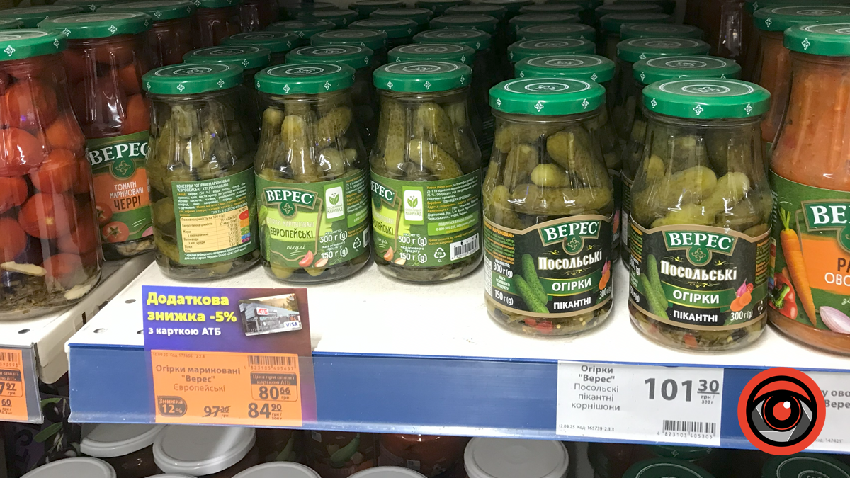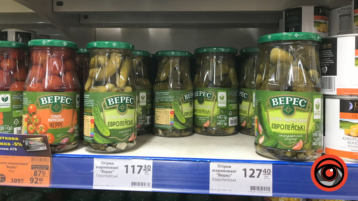 У супермаркеті “АТБ” доволі великий вибір консервованих огірків на будь-який смак та ціну. Найдешевша банка огірочків вартує 84,90 грн. Натомість найдорожча — 127,40 грн. Також є огірки вартістю 101,30 грн та 117,30 грн.