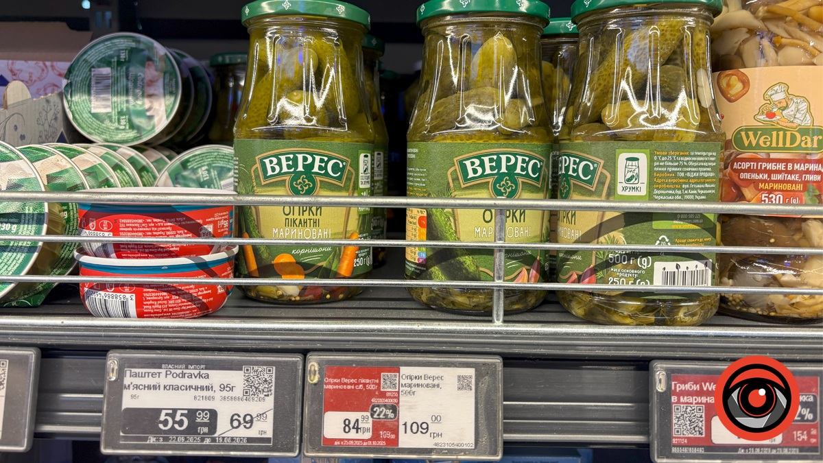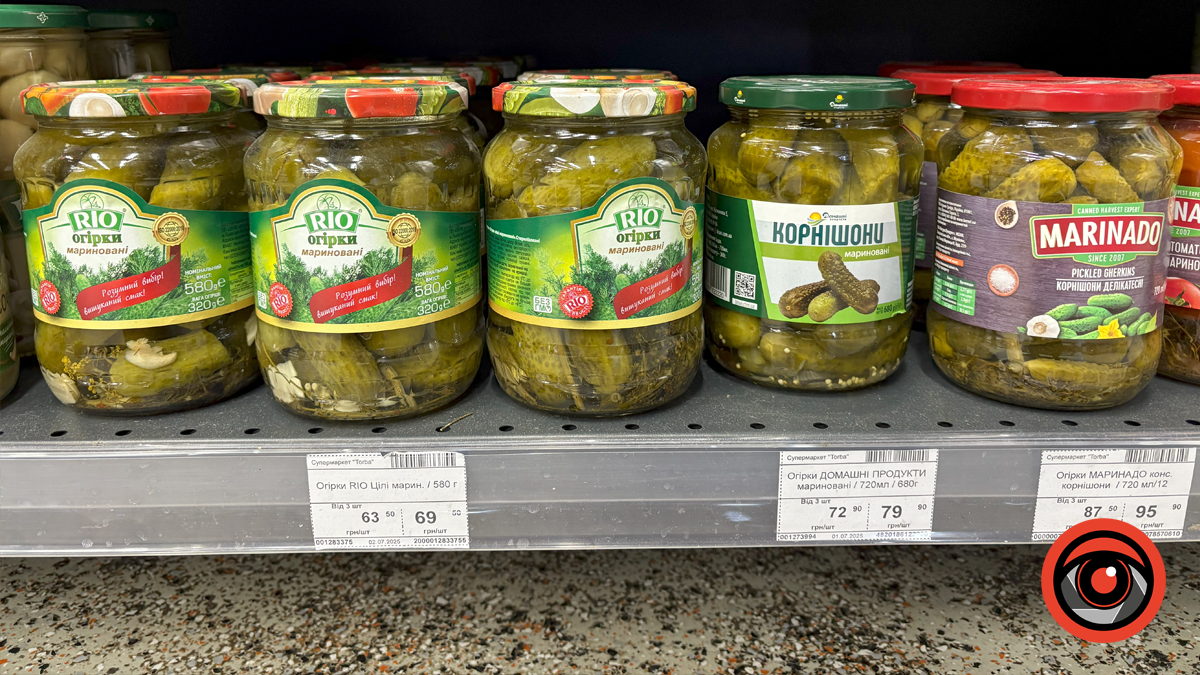 У супермаркеті “Сільпо” мариновані огірки можна придбати за ціною 85 та 109 гривень.