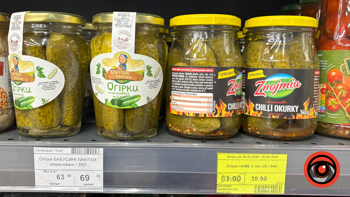 У супермаркеті “Торба” вартість огірків стартує від 40 грн. Найдорожа банка огірків коштує тут 95 грн.